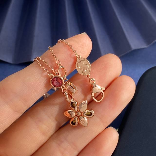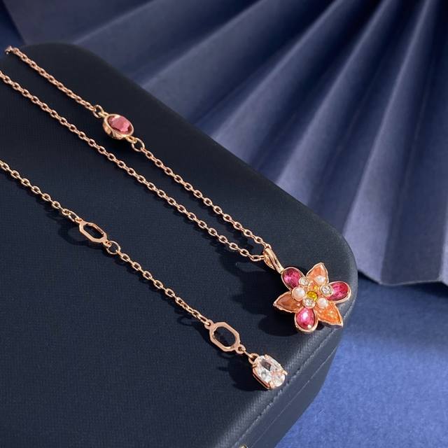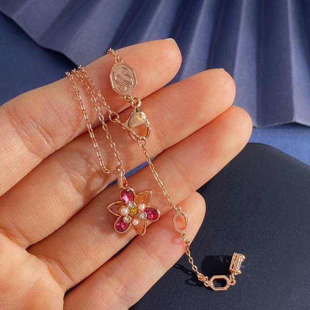 Swarovski Fashionable Luxury Diamond-Studded Zirconia Millet Pearl 3D Flower Pendant Necklace, Brass Material, Rose Gold Necklace, Weight approx. 4.8G; Necklace length approx. 43Cm + 3Cm + 3.5Cm + 0.7Cm Tail Pendant; Flower Pendant approx. 2Cm * 1.3Cm * 0.5Cm
