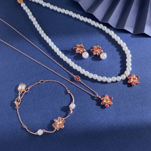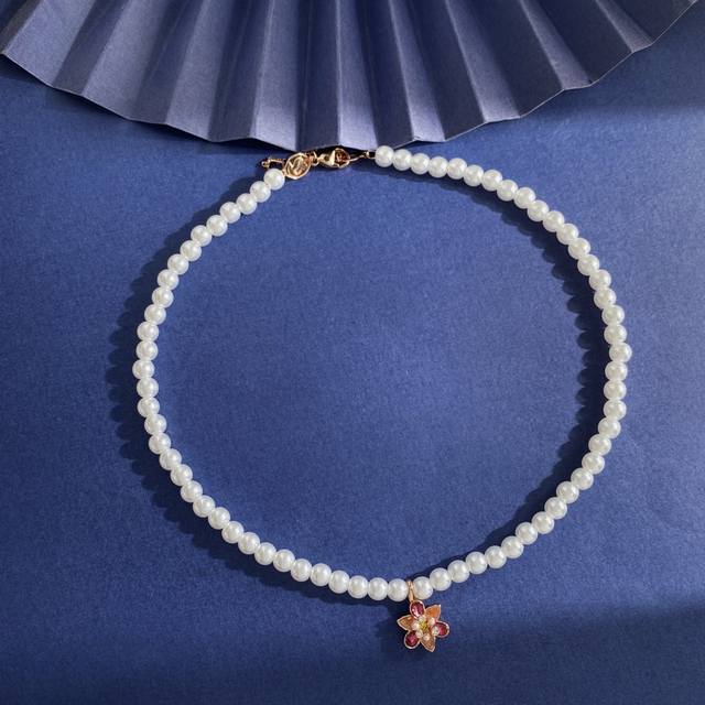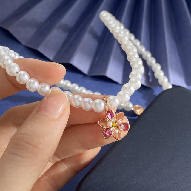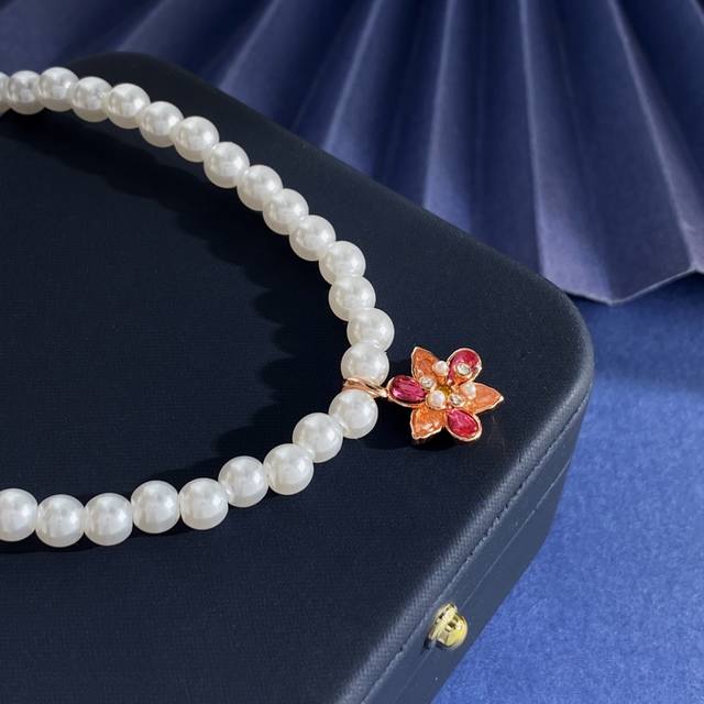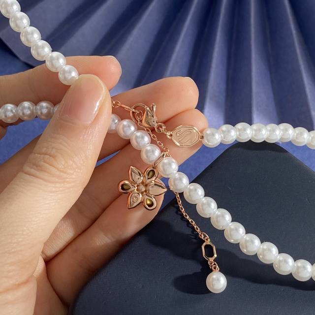 Swarovski Fashionable Luxury Diamond-Studded Zirconia Millet Pearl 3D Flower Pendant Pearl Necklace, Brass Material, Rose Gold Necklace, Weight approx. 10.2G; Necklace length approx. 40Cm + 3Cm + 3.5Cm + 0.7Cm Tail Pendant; Flower Pendant approx. 2Cm * 1.3Cm * 0.5Cm