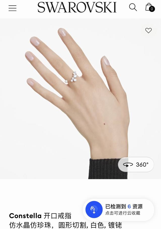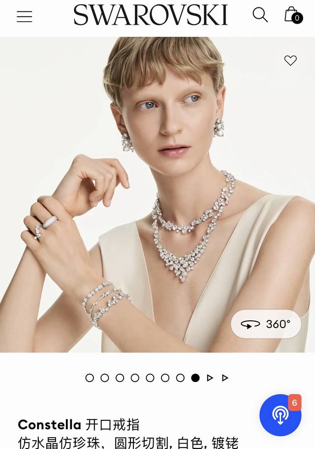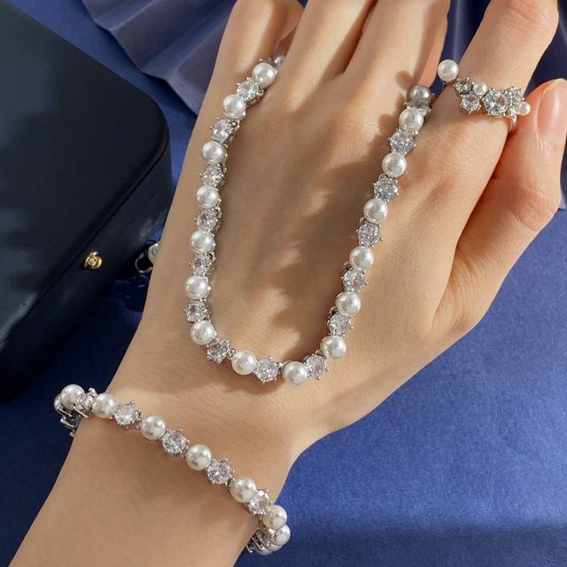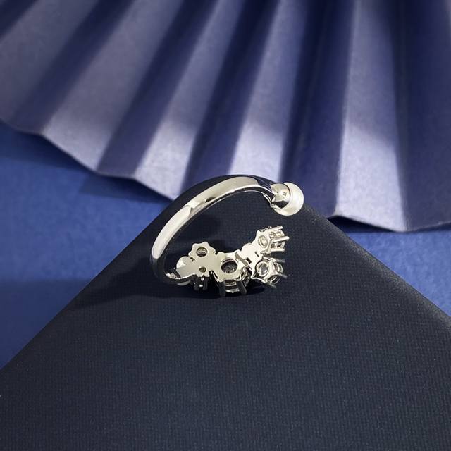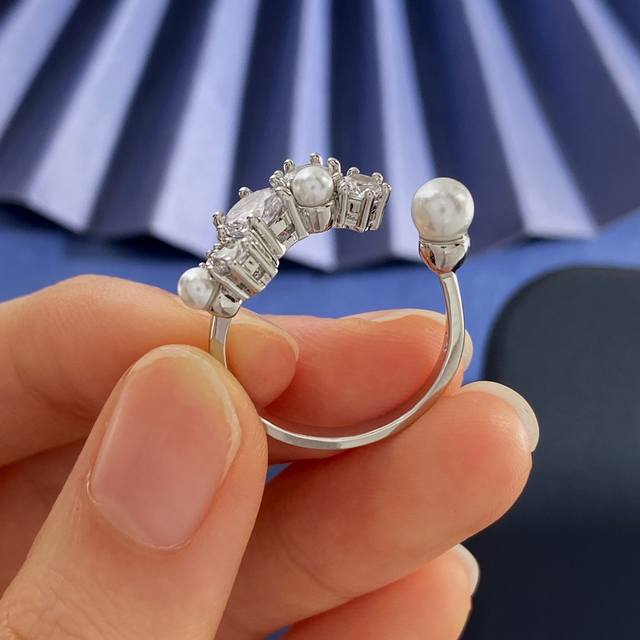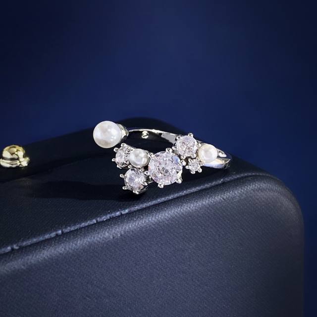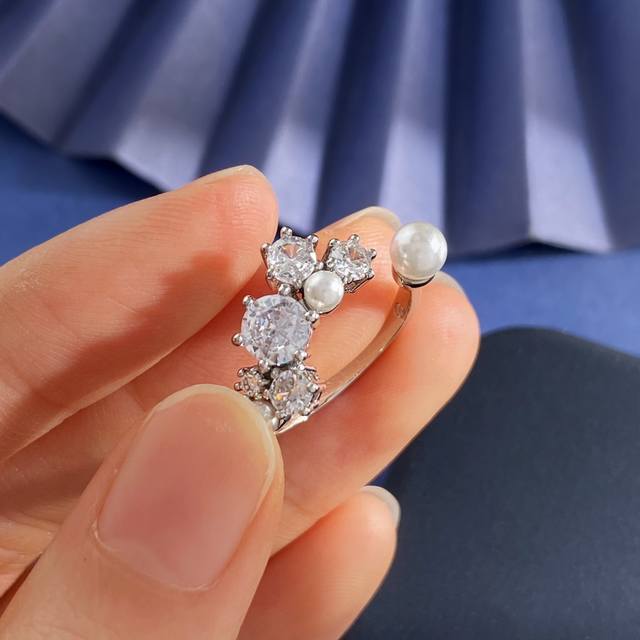 Swarovski Fashionable and High-End Round Cut White Diamond Small Pearl Open Ring, Brass Material, Silver Ring, Approx. 3.1G