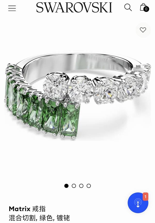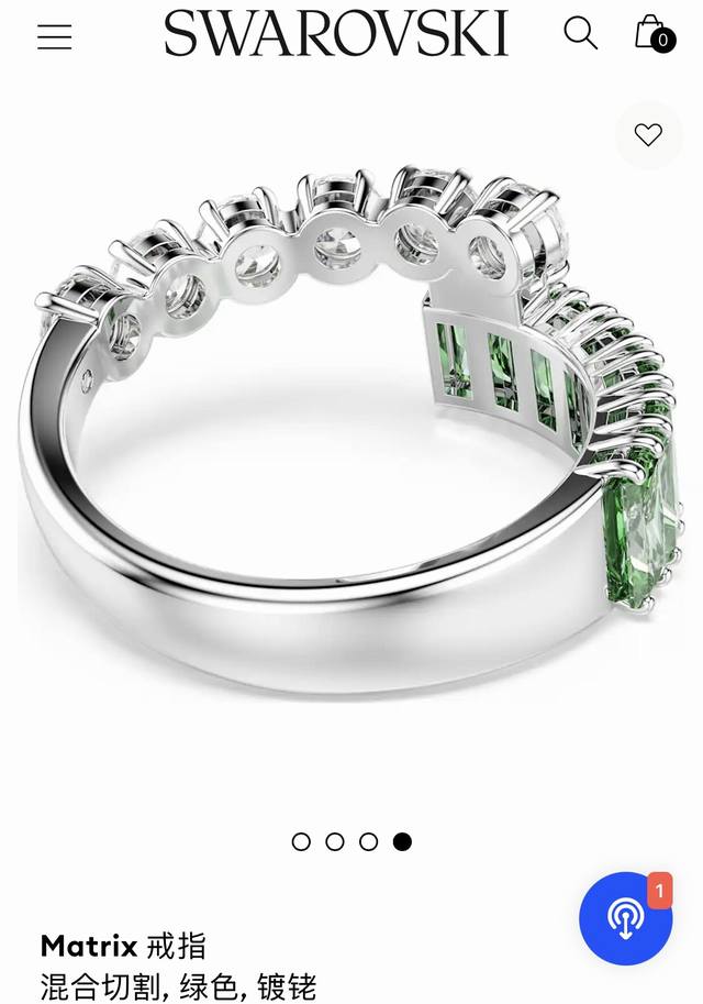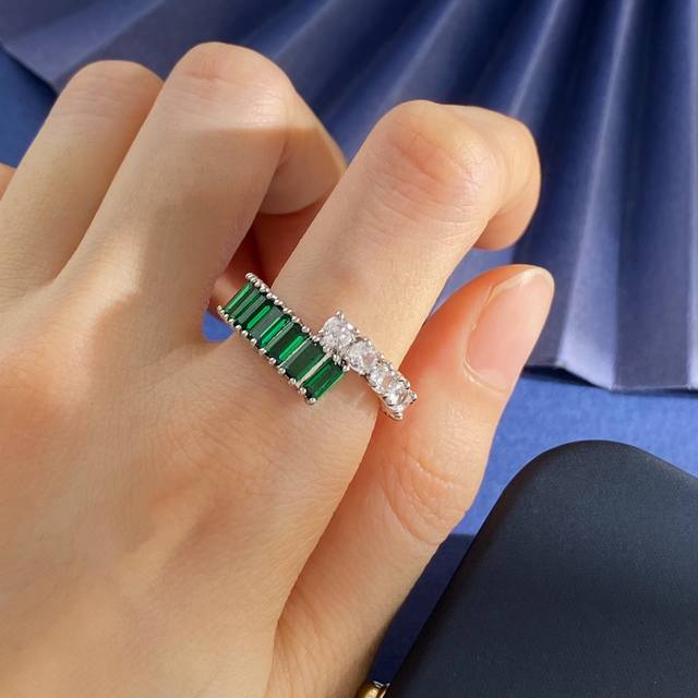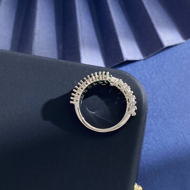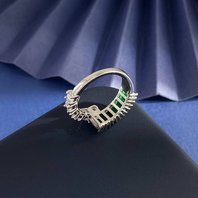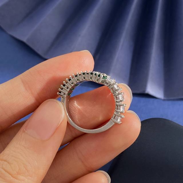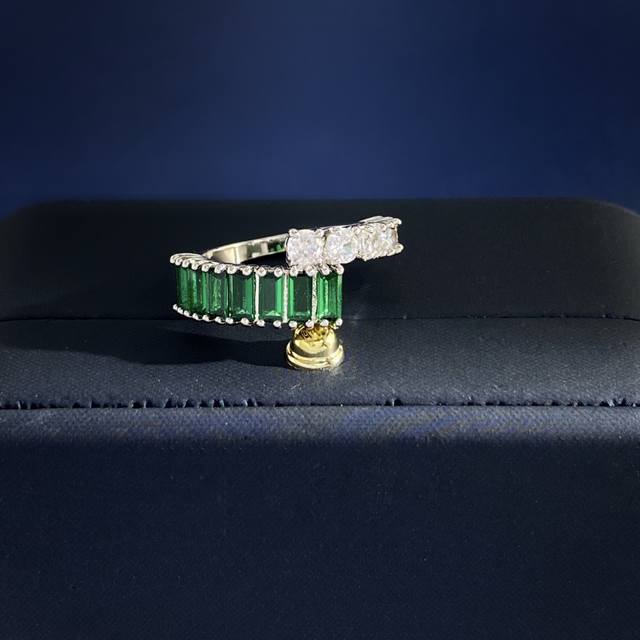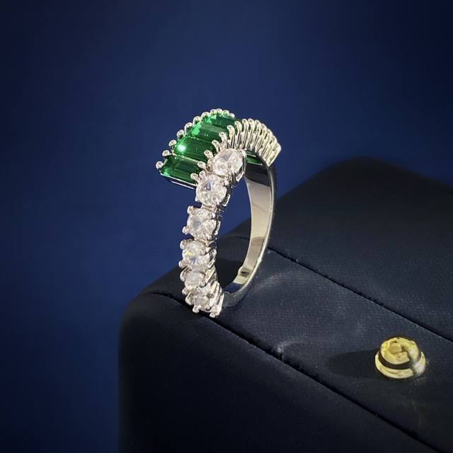 Swarovski Fashionable Luxury Mixed-Cut Round Diamond Green Rectangular Diamond Ring, Brass Material, Weight 4g