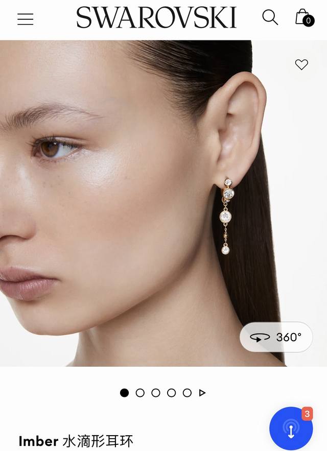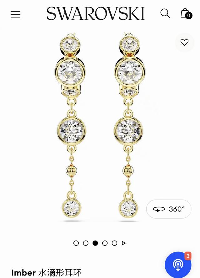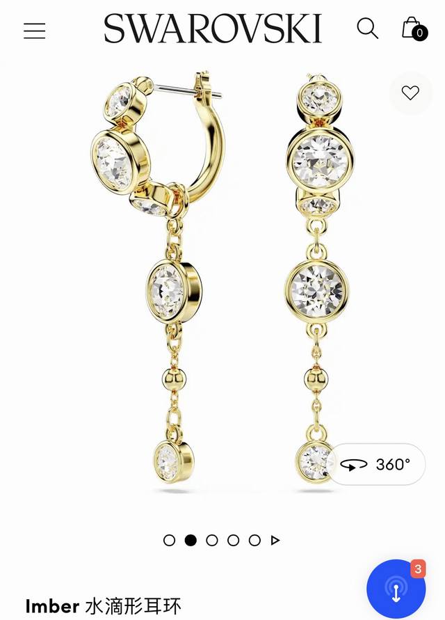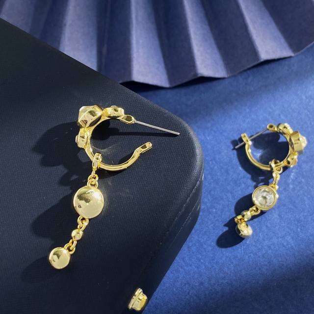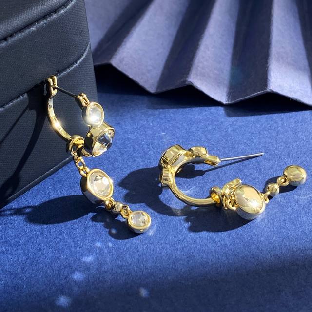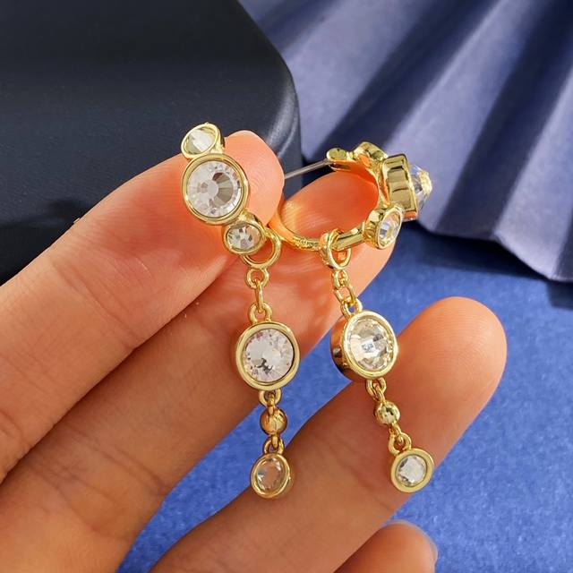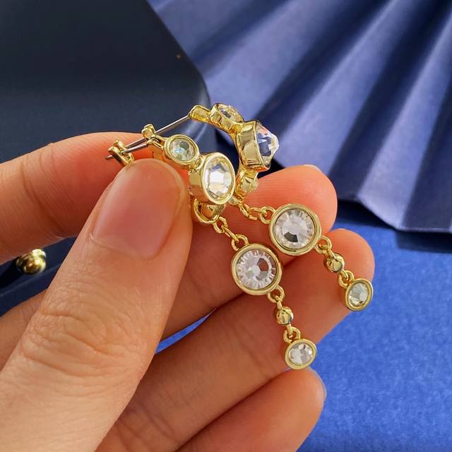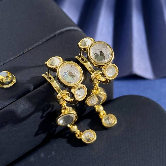 Swarovski's new fashion luxury large and small round diamond ring pendant chain large and small diamond smart earrings brass material gold weight about 8.5G total height about 4.5cm