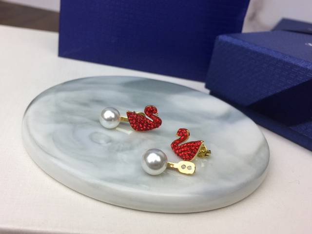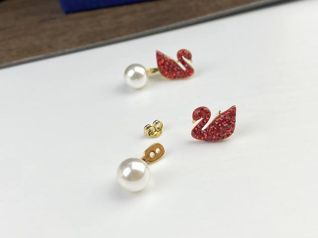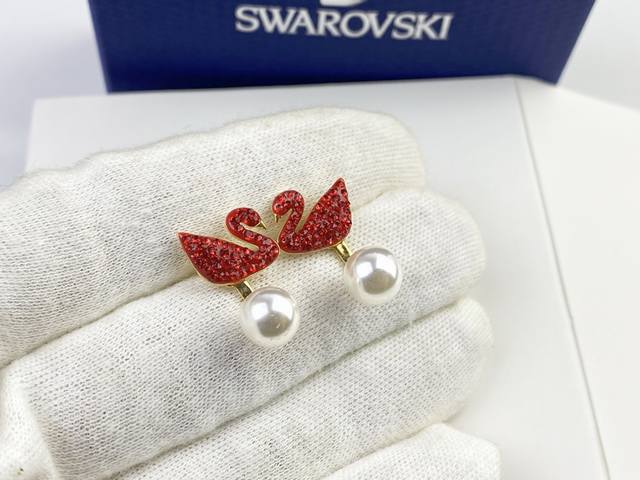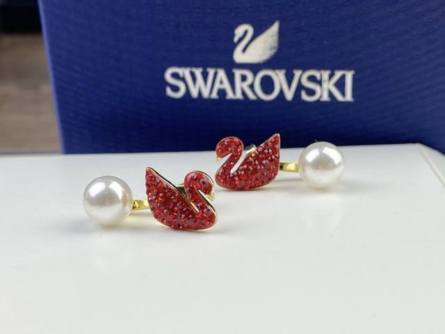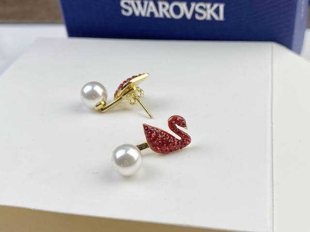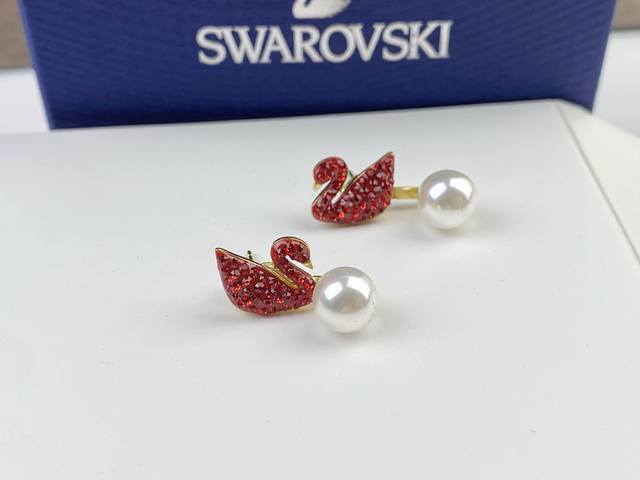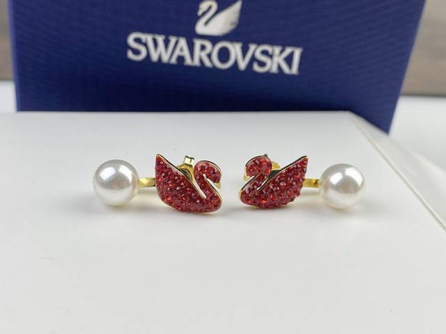 Sw* New Swarovski Red Swan Earrings! Big! Red! Goose Gold Plated with Swarovski Red Diamonds, Exquisite Craftsmanship, a New Breakthrough in Swarovski Earrings