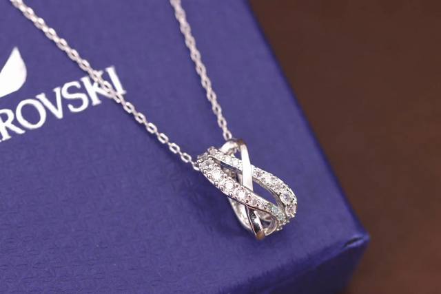 ) This pendant breathes new life into the currently popular spiral element, showcasing the brand's 125 years of dazzling brilliance. Its beautifully interwoven, sparkling lines, combined with multiple rows of light-colored Swarovski crystals that subtly interact with light, create a captivating kaleidoscope of brilliance, adding a finishing touch to the overall design. (