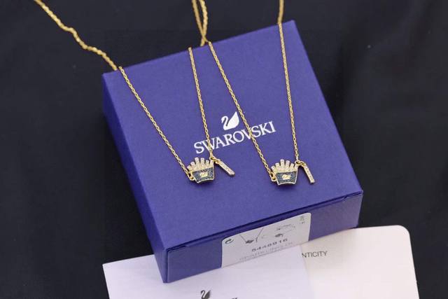 ) This necklace features a fries adorned with the swan logo and is crafted using low-temperature ceramic technology, embellished with refreshing and pleasing Swarovski crystals. (