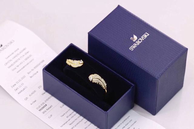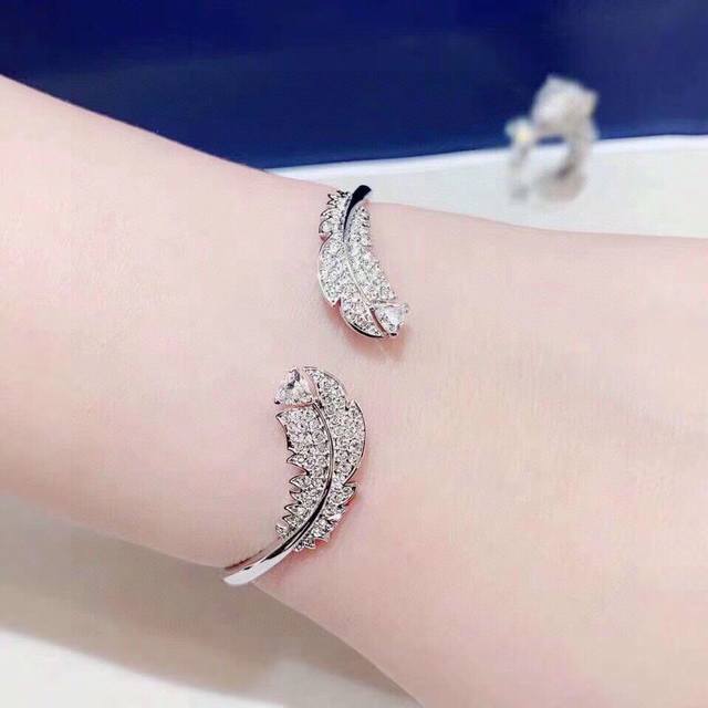 ) Feathers are currently a highly popular design element. This elegant and sophisticated bracelet is adorned with sparkling Swarovski crystals, adding a touch of brilliance to any party outfit. (