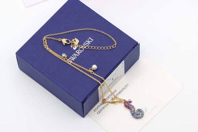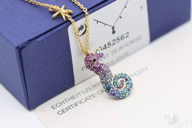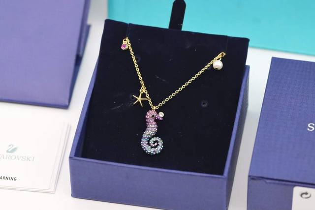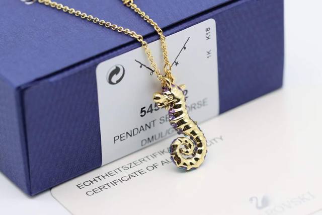 ) Inspired by the underwater world, this necklace creates a dazzling and charming summer look. The seahorse embellishment is decorated with Swarovski crystals, showcasing a brilliant and captivating brilliance. (
