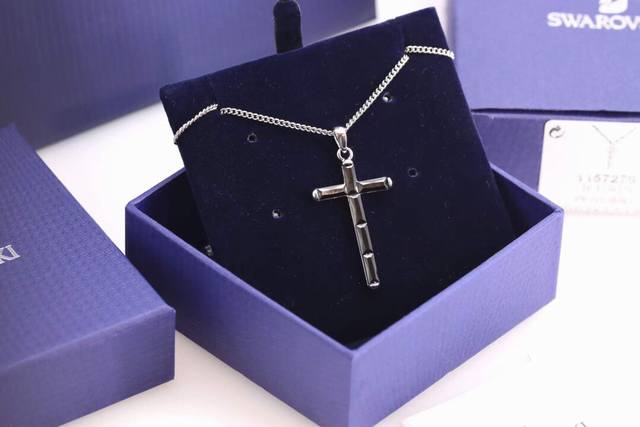 Swarovski Men's Black Cross Collarbone Necklace (