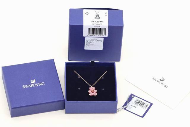 ) This necklace, incorporating teddy bear elements, boasts an adorable design and captivating brilliance, adorned with two heart-shaped Swarovski crystals. It's a perfect gift for adults who haven't lost their childlike wonder. (