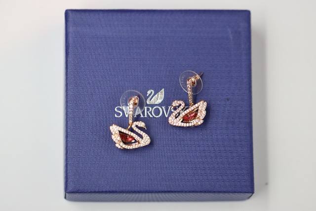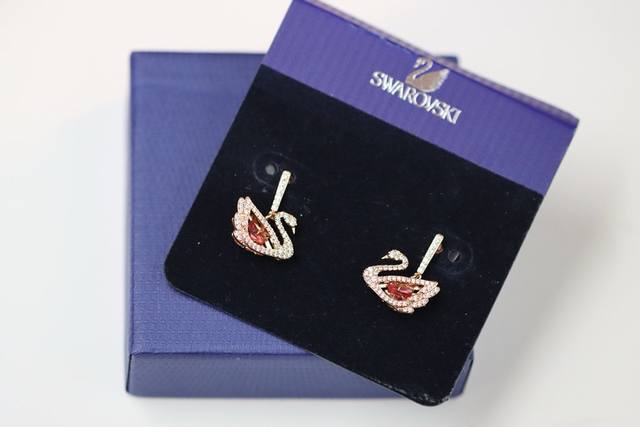 Swarovski Rose Gold Openwork Pink Diamond Dancing Swan Earrings (