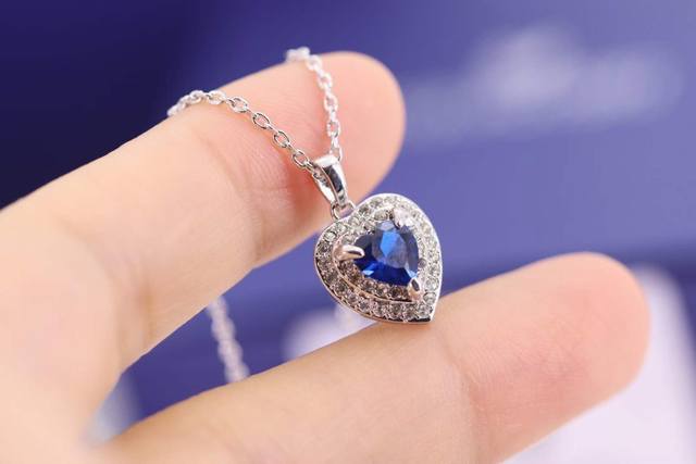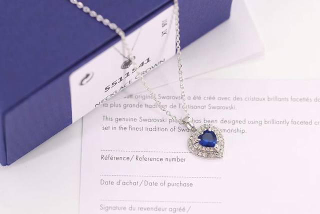 ) This dazzling white gold chain features a deep blue Swarovski crystal heart design. Perfect for everyday wear, it's a thoughtful gift for someone special. (