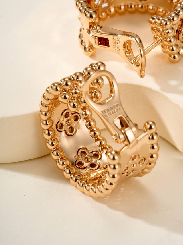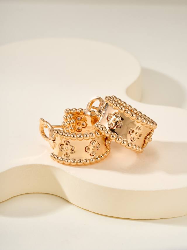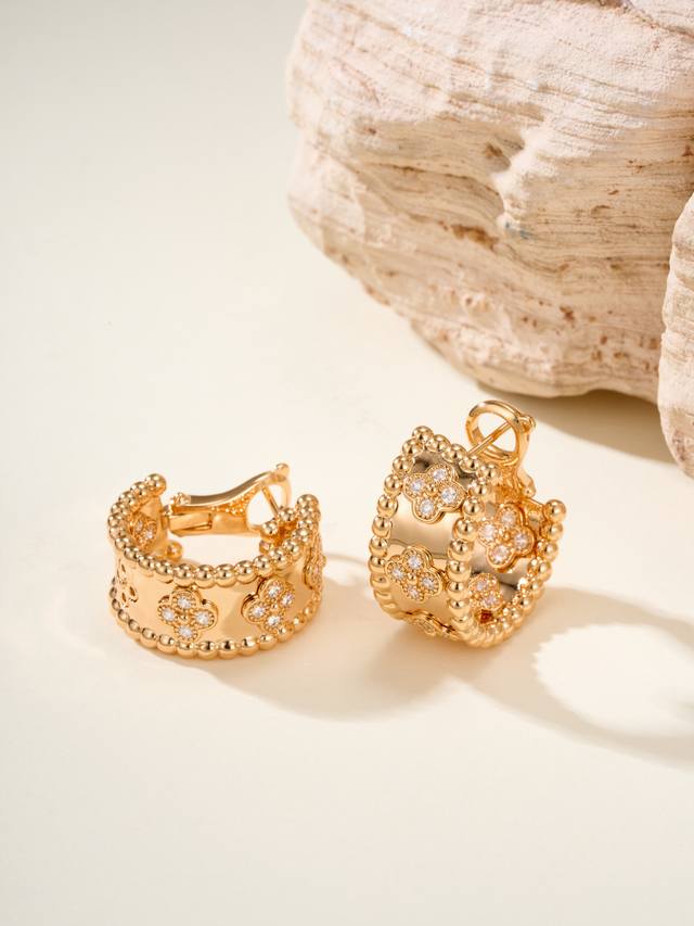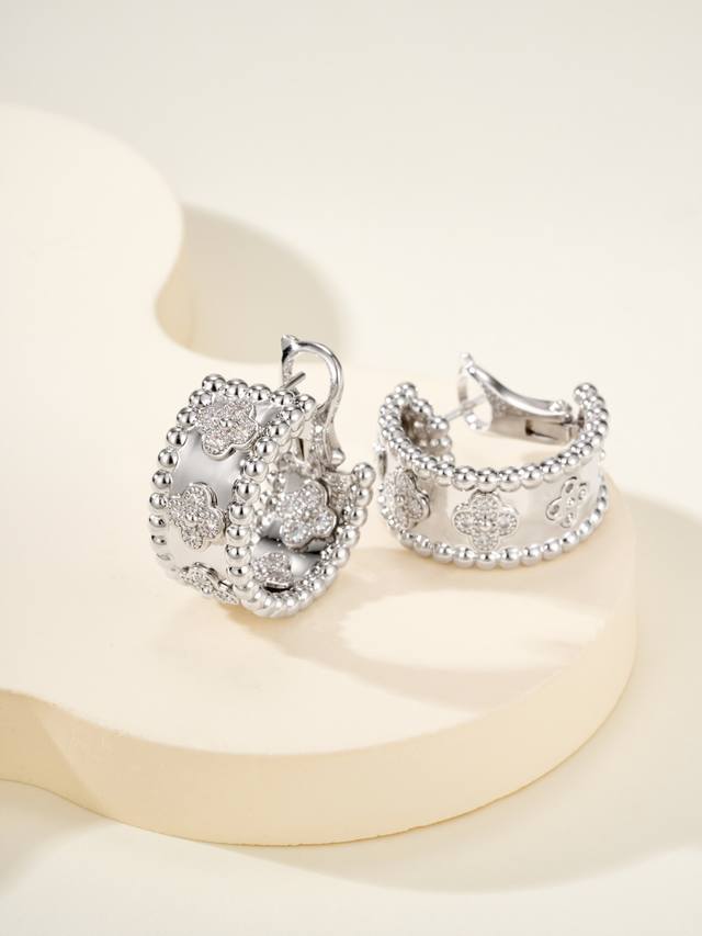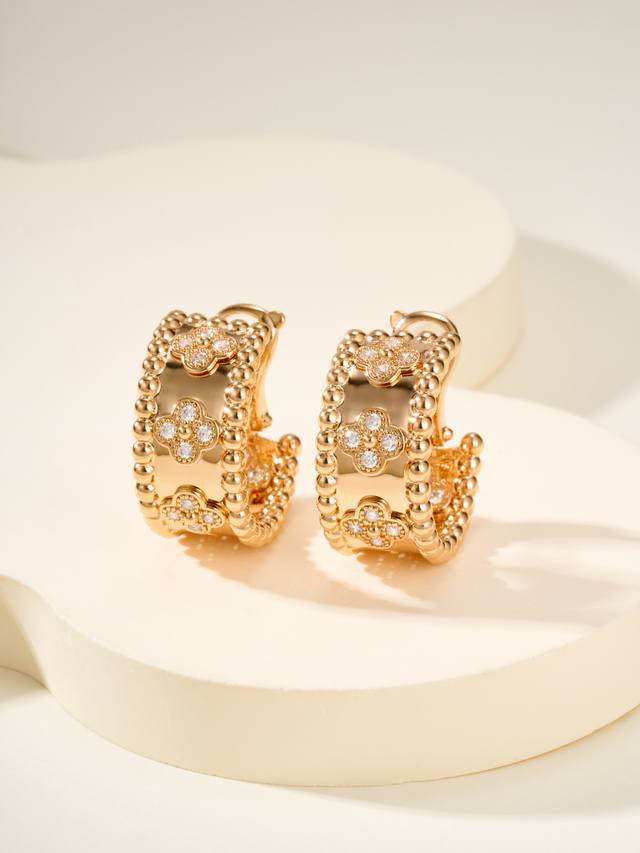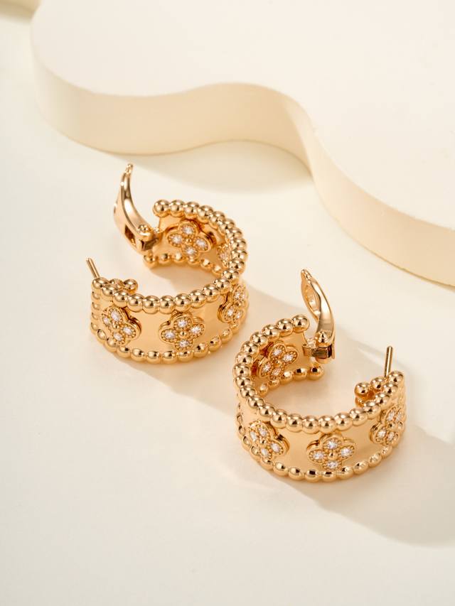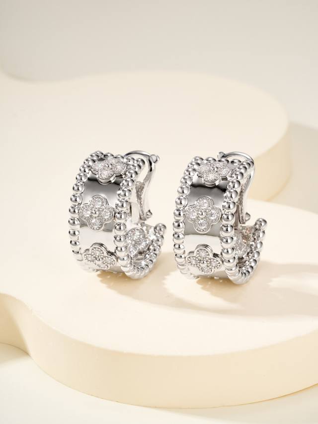 The upturned bead design has a lively texture, paired with a rhinestone four-leaf clover pattern, so exquisite it's like wearing a whole spring's flowers on your ears~
