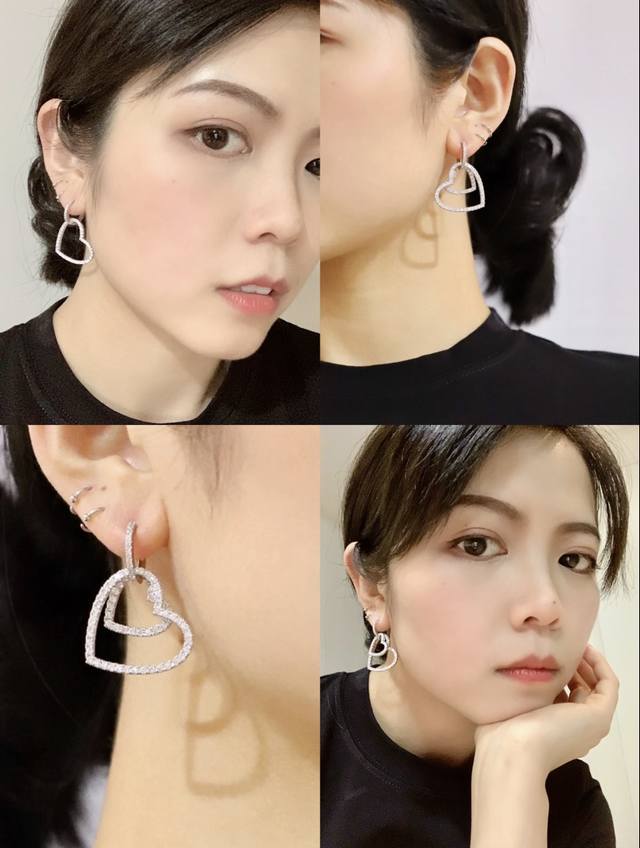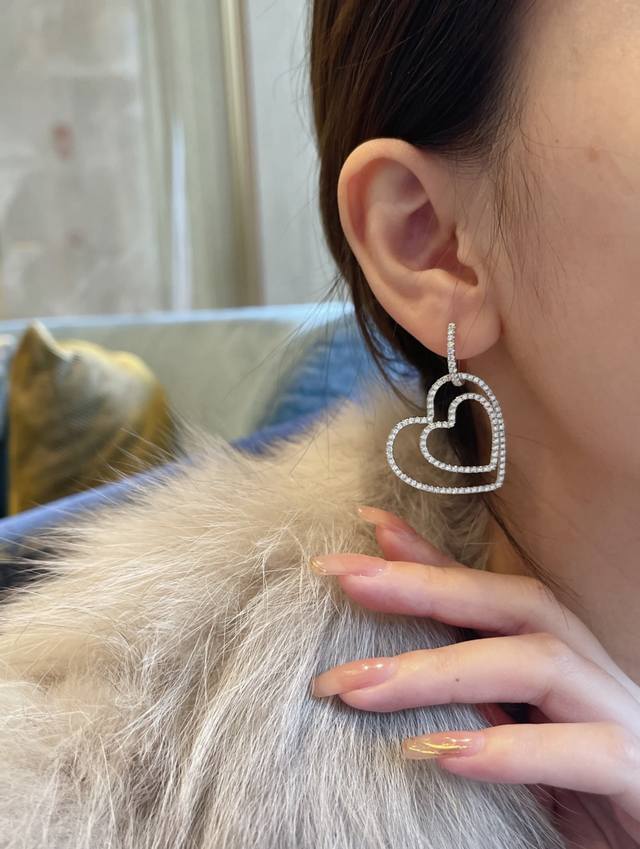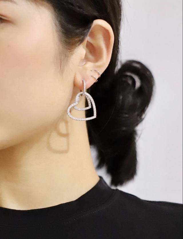 Te023 Rose Gold DDD Te024 Gold DDD Tiffany's latest two-tone diamond-encrusted double heart earrings, made of the same ZP brass material, very photogenic, unique design, worth buying from the M