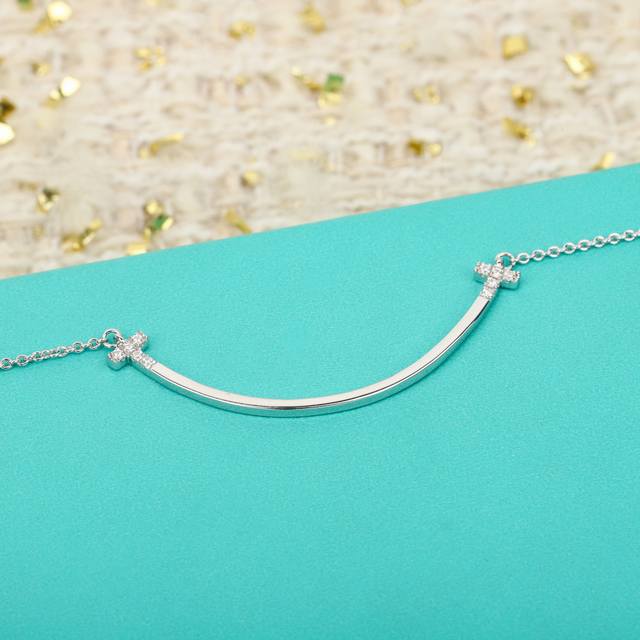 211488 We offer a meticulously crafted sterling silver "Apocalypse" style diamond-encrusted "Smiling Face" necklace, with a genuine gold version available upon request. We only produce authentic replicas. The Tiffany T series symbolizes the infinite possibilities of love. Inspired by a classic bracelet launched in 1975, the series pays homage to Tiffany's iconic motif and the spirit of New York with its "T" design. Founder Charles Lewis Tiffany believed New York was a place full of hope and possibility. This necklace can be worn alone or paired with other pieces in the Tiffany T series. Thick gold plating ensures long-lasting color retention.