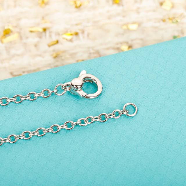 The Return To Tiffany series is inspired by a design from 1969, with classic symbols embodying Tiffany's exceptional quality. The minimalist necklace design, paired with an exquisitely engraved double heart charm, exudes refined elegance. The striking blue enamel charm continues the brand's classic style since its founding in 1837, creating a vibrant splash of color.