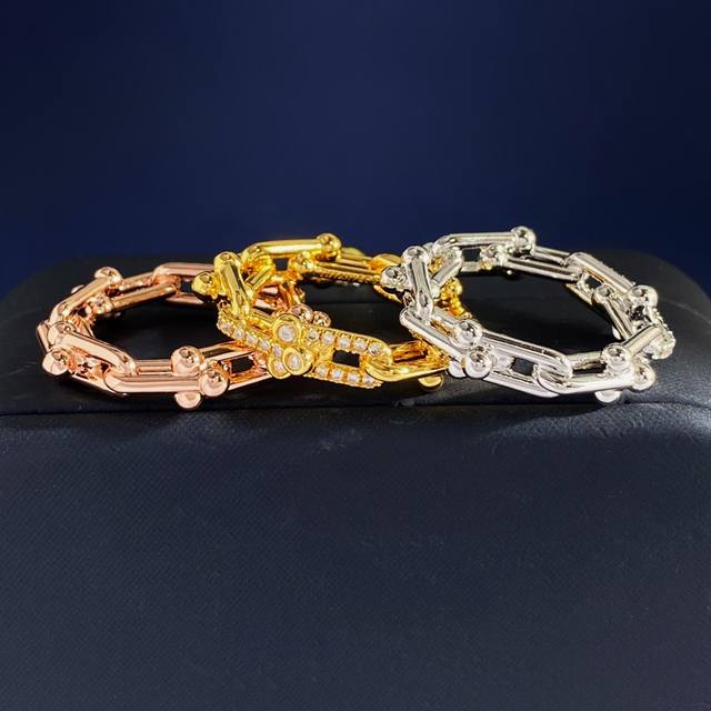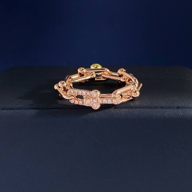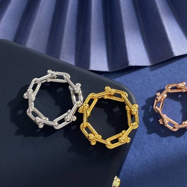 Tiffany & Co. Tfn European and American modern fashion, unique interlocking U-shaped horseshoe buckle bamboo joint brooch ring, brass material, gold, silver, rose 3 colors, size 678, face width approximately 0.6Cm