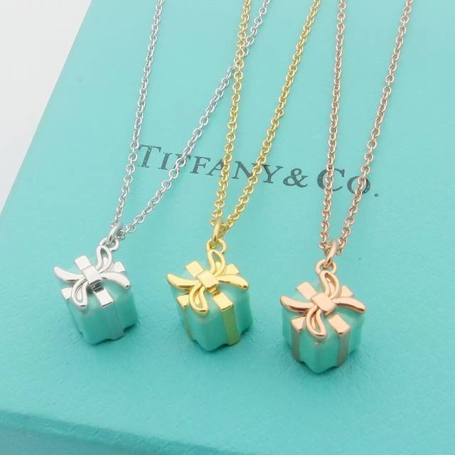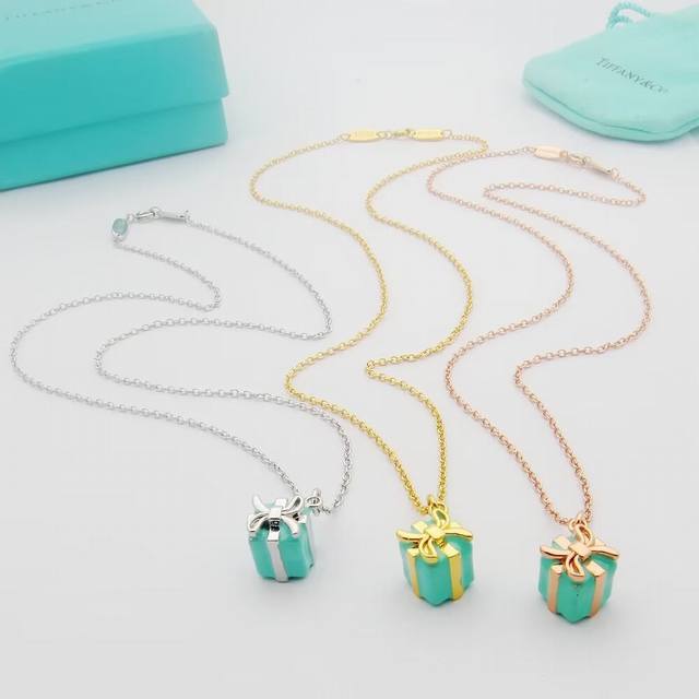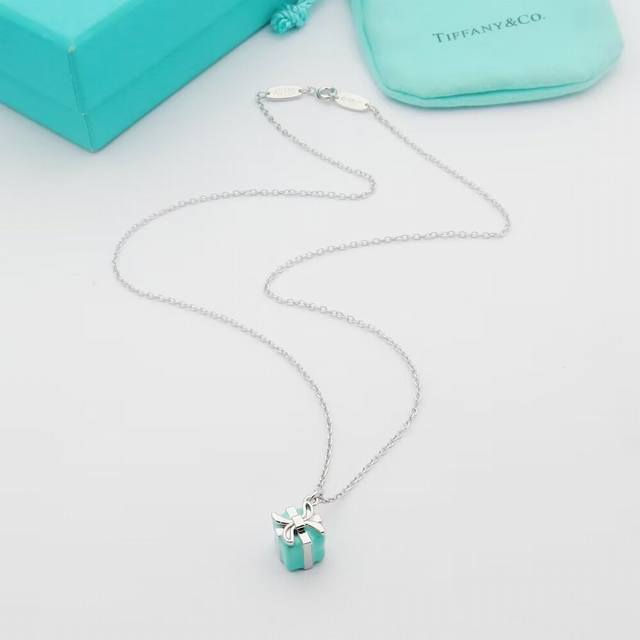 / Tiff Tiffany necklace enamel gift box necklace pendant Valentine's Day gift exqu