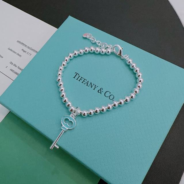 Tiffany & Co. boutique-style exquisite silver bracelet, celebrity-endorsed retro distressed style, original replica, handcrafted, genuine product, trendy and fashionable, a must-have for men and women, suitable for couples, rock punk style, trendy and versatile, same as the official website style, 5M adjustable