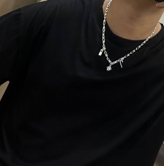 Tiffany & Co. necklace, exquisite silver version, celebrity style, vintage distressed look, original replica, handcrafted, genuine product, trendy and fashionable, a must-have for men and women, suitable for couples, rock punk style, trendy and versatile, same style as the official website.