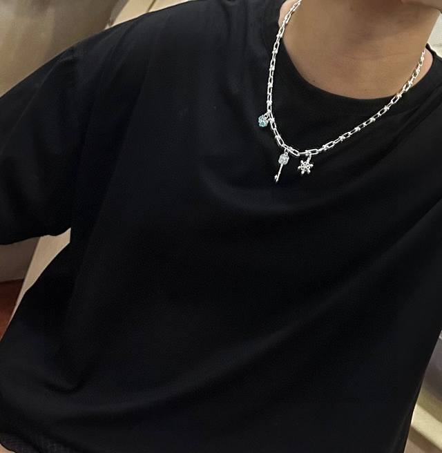 Tiffany & Co. necklace, exquisite silver version, celebrity style, vintage distressed look, original replica, handcrafted, genuine product, trendy and fashionable, a must-have for men and women, suitable for couples, rock punk style, trendy and versatile, same style as the official website.