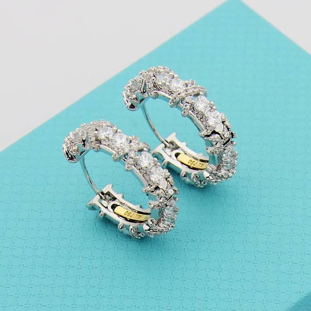 Tiffany & Co. Sixteen Stones Collection Earrings, Latest Schlumberger Series Cross Stud Earrings, Full Diamond Stud Earrings, Exquisite Polishing, Noble and Elegant, Stud Earrings (