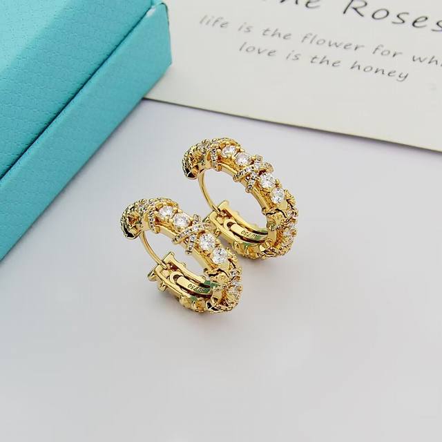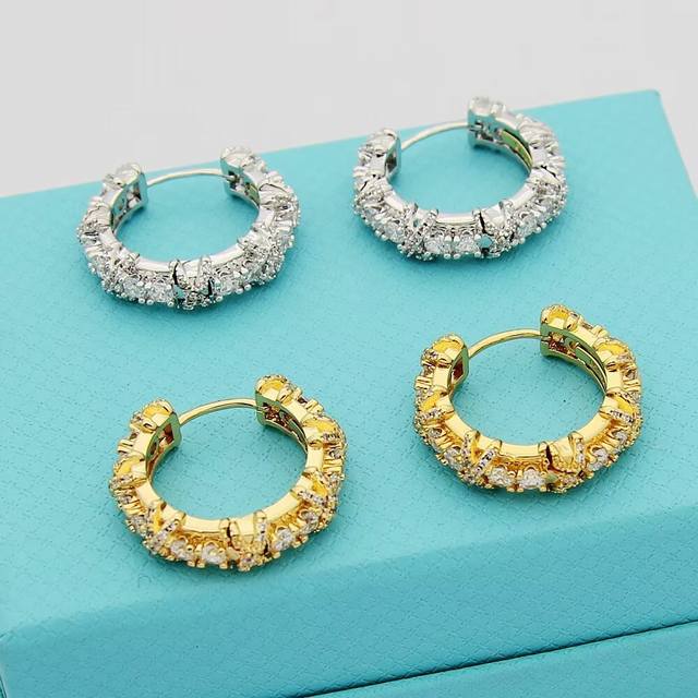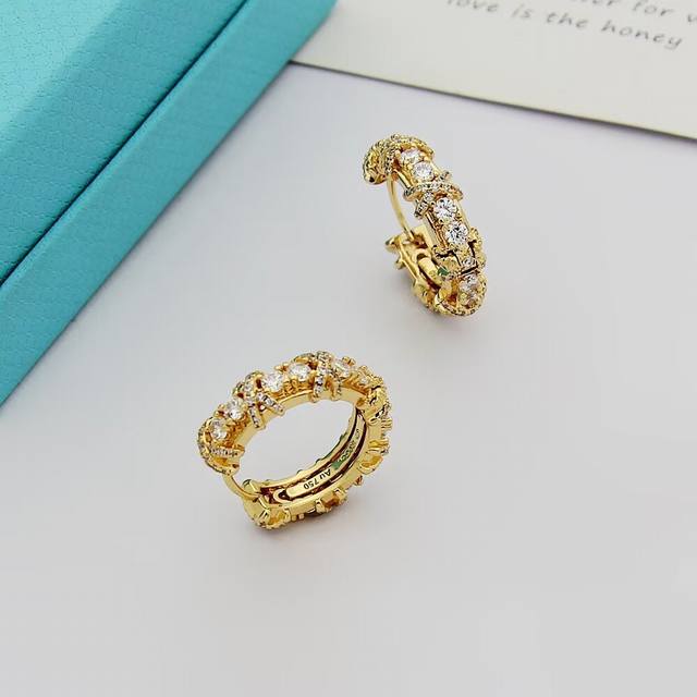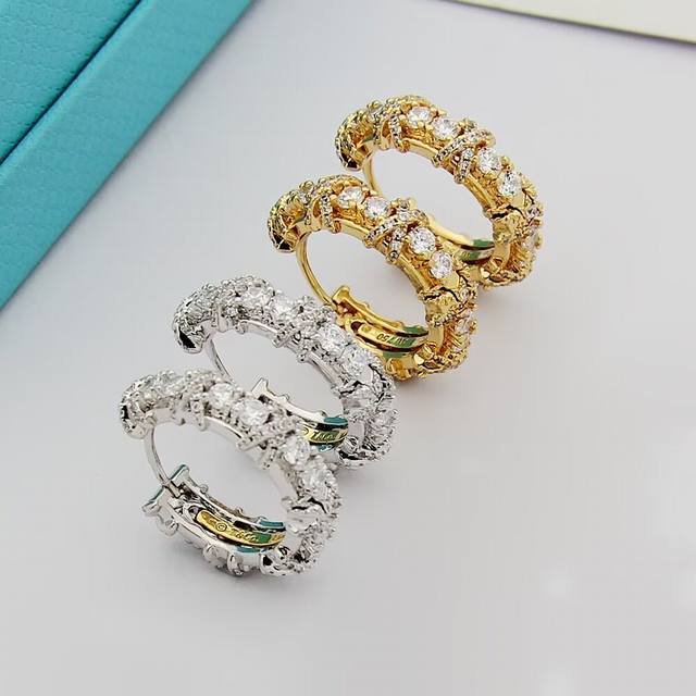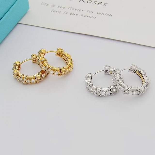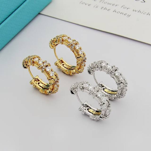 Tiffany & Co. Sixteen Stones Collection Earrings, Latest Schlumberger Series Cross Stud Earrings, Full Diamond Stud Earrings, Exquisite Polishing, Noble and Elegant, Stud Earrings DDD