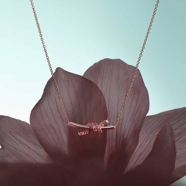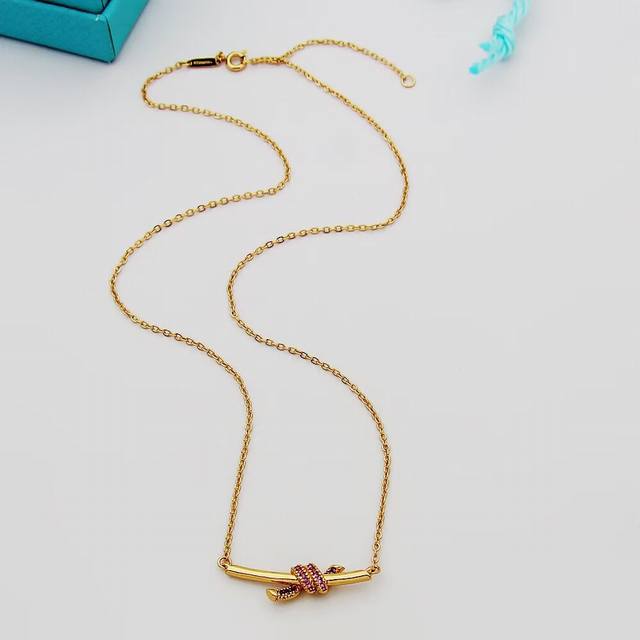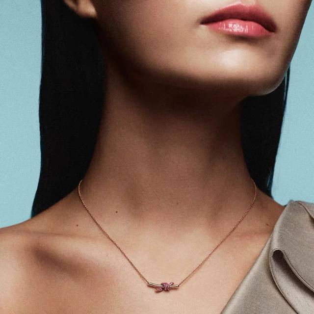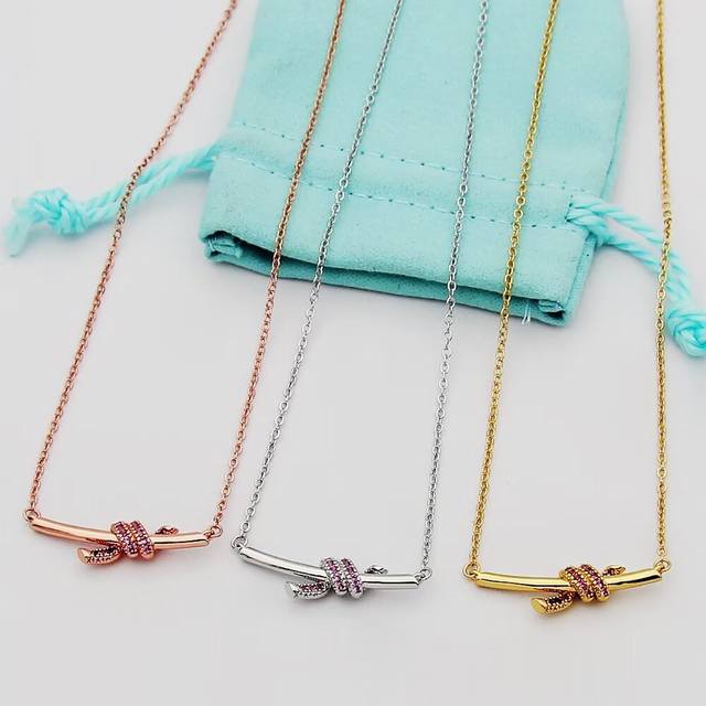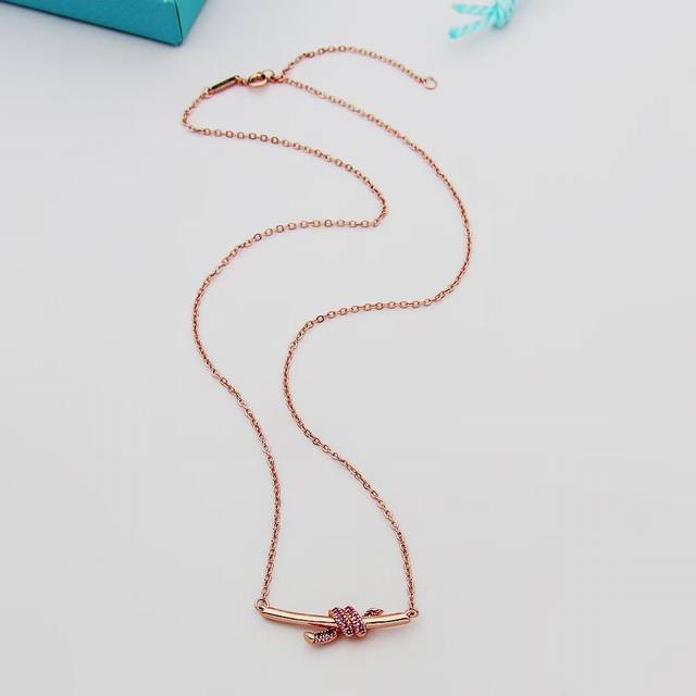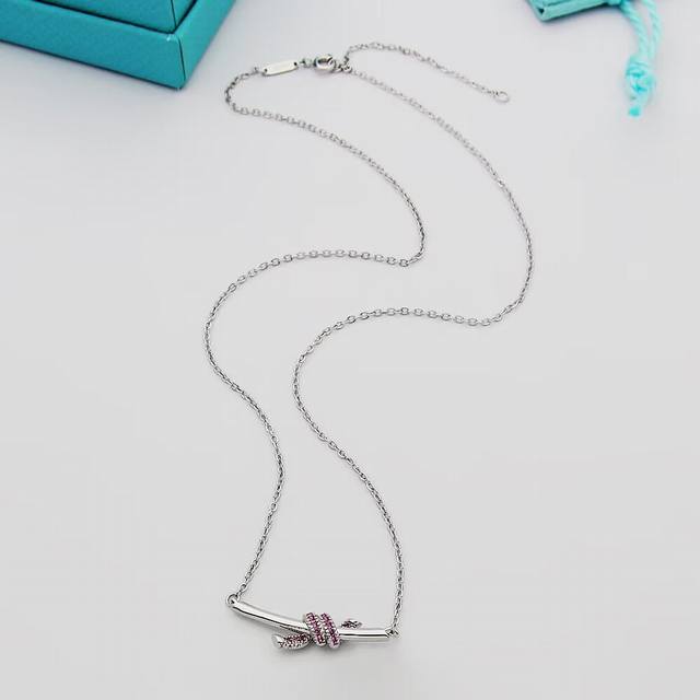 Tiffany necklace Knot series small necklace, mini pink diamond knotted necklace made of sub-gold and inlaid with high-carbon diamonds. The stylish and unique winding knot symbolizes the unique and eternal connection between two people. Small half-diamond pink diamond necklace