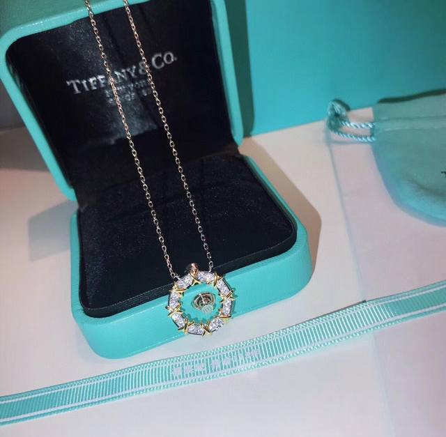 Tiffany Necklace, Round Cross Necklace ~ Sexy and beautiful, full of romance and femininity. High-end gold material, micro-pave technique, and advanced color-blocking electroplating create a versatile piece.