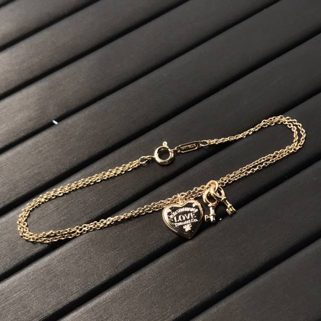 / Tiffany New Heart Lock Double Layer Bracelet in Rose Gold and White Gold (Ddd)