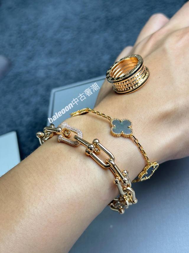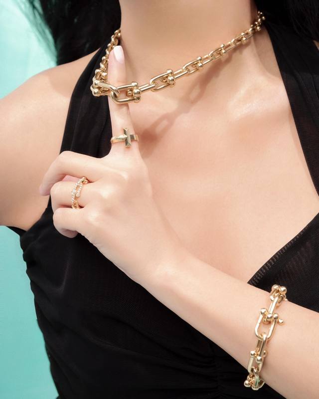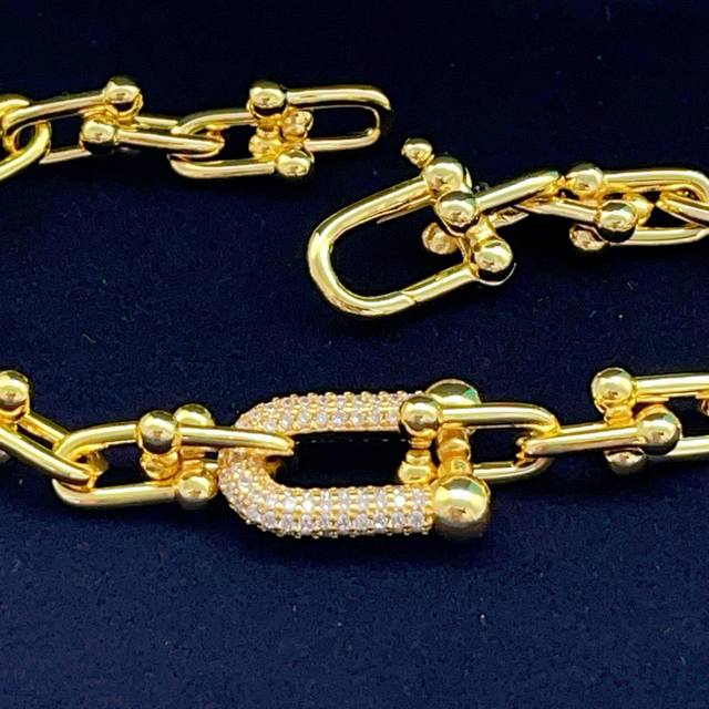 Ts014 Tiffany* Tiffany U-shaped diamond-encrusted gold bracelet, made of the sam