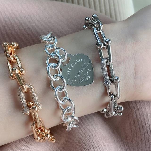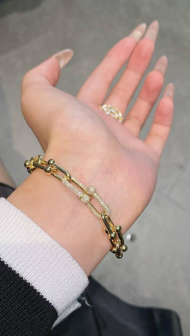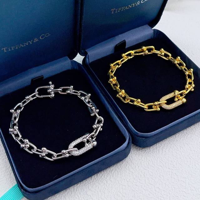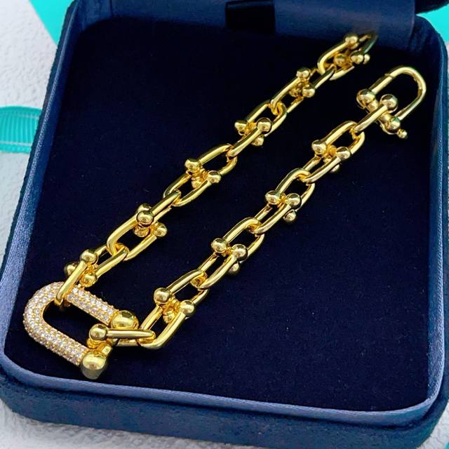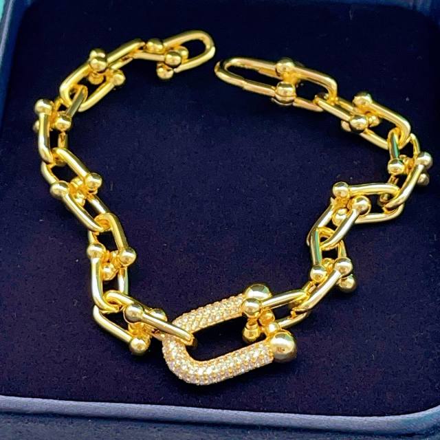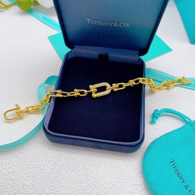 Ts014 DDD Tiffany* Tiffany U-shaped diamond-encrusted gold bracelet, made of the same brass material as the original, very photogenic, with a unique design, definitely worth buying from the M