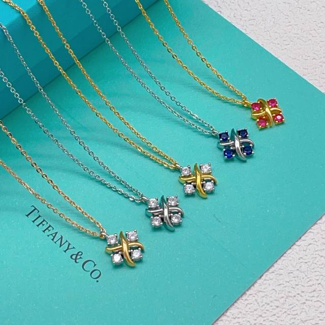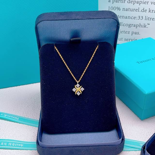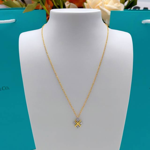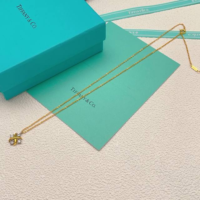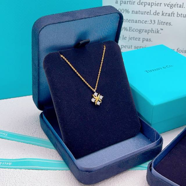 Tx017 DDD Tiffany's latest white diamond-encrusted square silver necklace, made of the same brass material as the original, very photogenic, with a unique design, definitely worth buying from the M