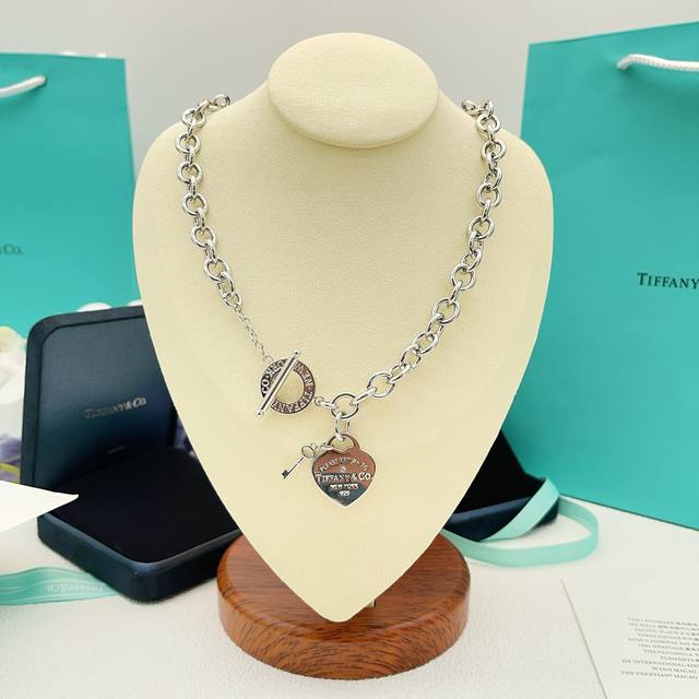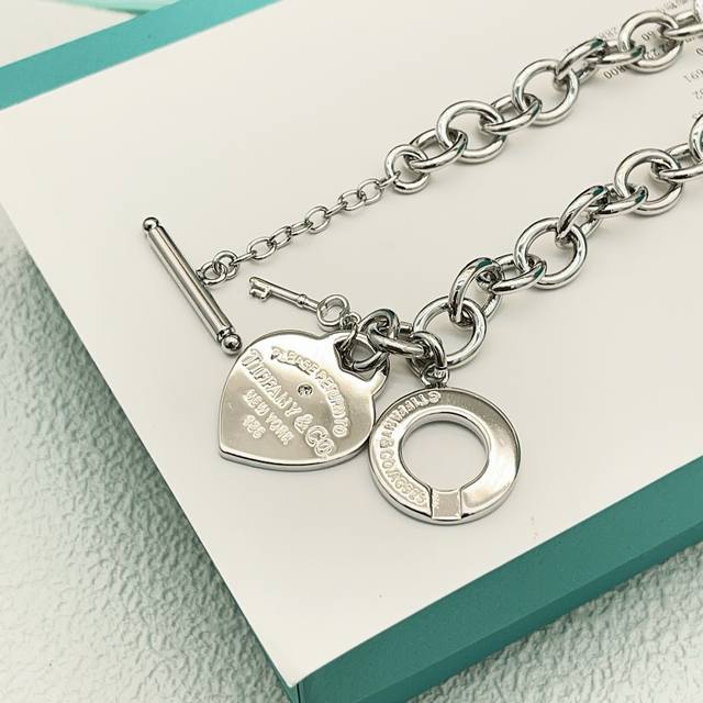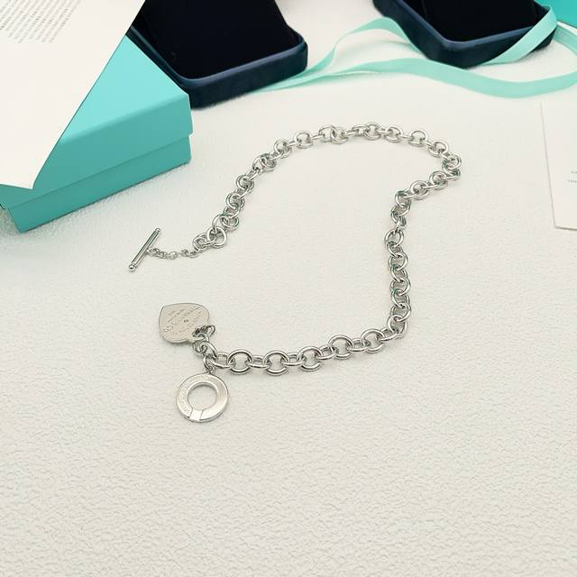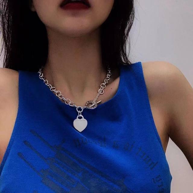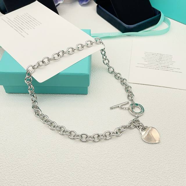 Tx032 DDD Tiffany* Smooth Heart Silver Necklace, made of the same brass material as the original, very photogenic, unique design, worth buying from the M