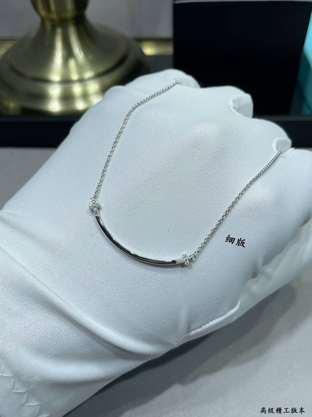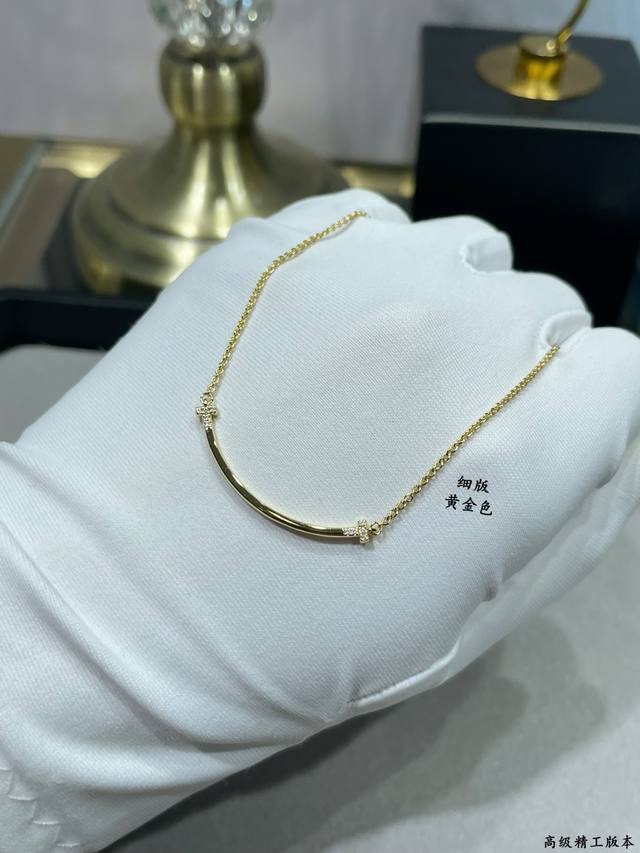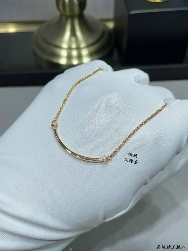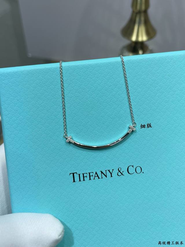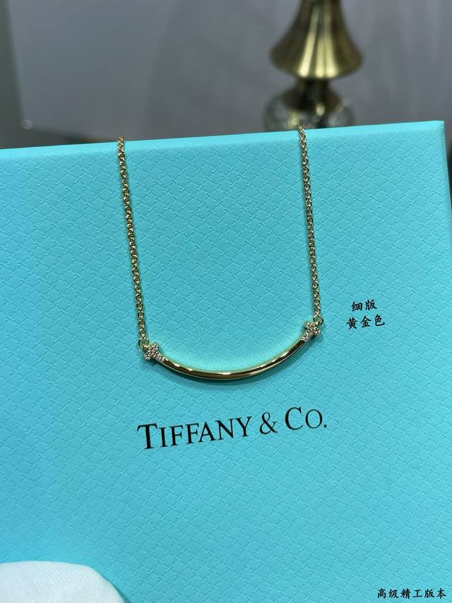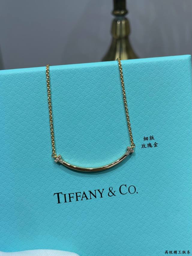 V Gold Tiffany Slim Smiley Face Necklace with Diamonds on Both Sides. Tiffany's design is inspired by the smiley face. A smile is the most beautiful form of confidence, emanating the most sincere charm from the heart. Original, high-quality, with a Z-batch logo. A simple, sophisticated, trendy must-have.