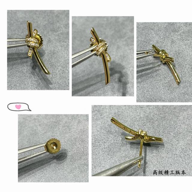 V gold ZP open edition, Tiffany CNC half-diamond T-knot earrings, the intertwined ends are a powerful symbol of emotional connection. Elegant and stylish, with an exceptional value for money, the highest quality on the market. Exquisite workmanship, see photos for the truth. Rose gold is out of stock.