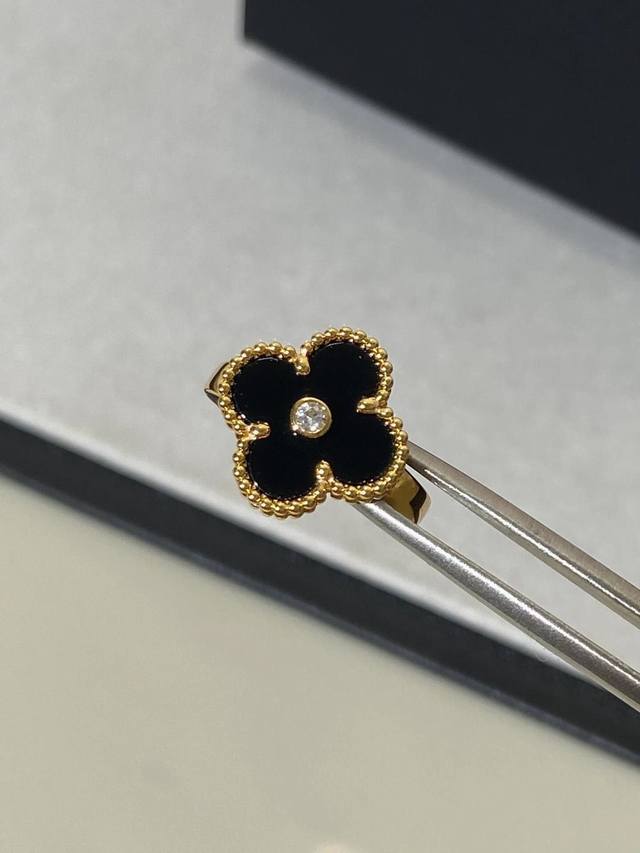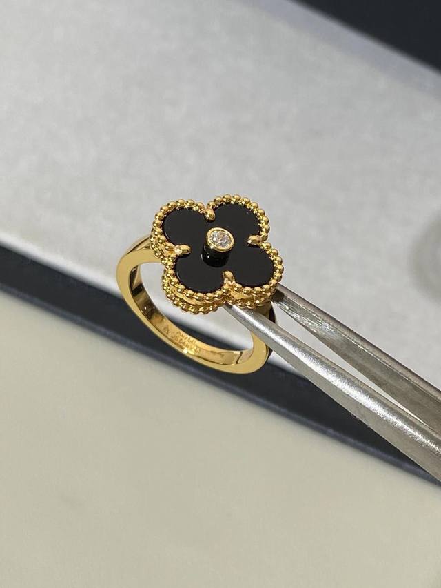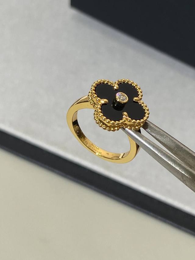 V Gold-plated Black Onyx High Jewelry Vca Van Cleef & Arpels Custom Classic Four-Leaf Clover Ring Series This Year's Hottest Style, Perfect Flower Shape, Round and Full, High-End Batch Consistent. Delicate when worn alone, fashionable when stacked. Exquisite craftsmanship, long-lasting color retention, hypoallergenic, and non- fading . Sizes 6789 DDD