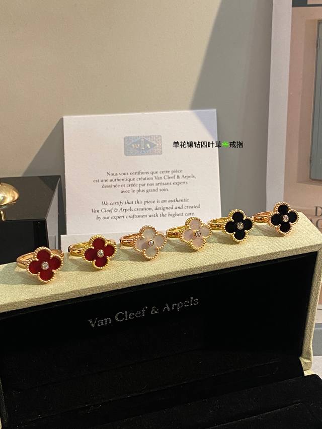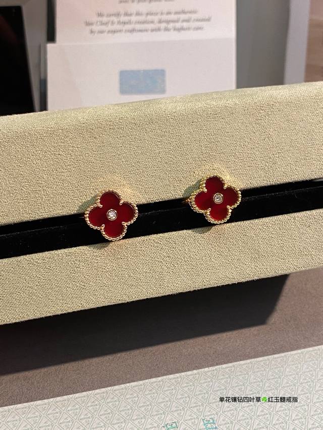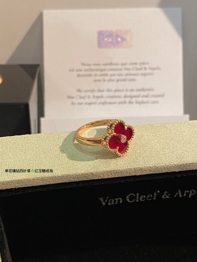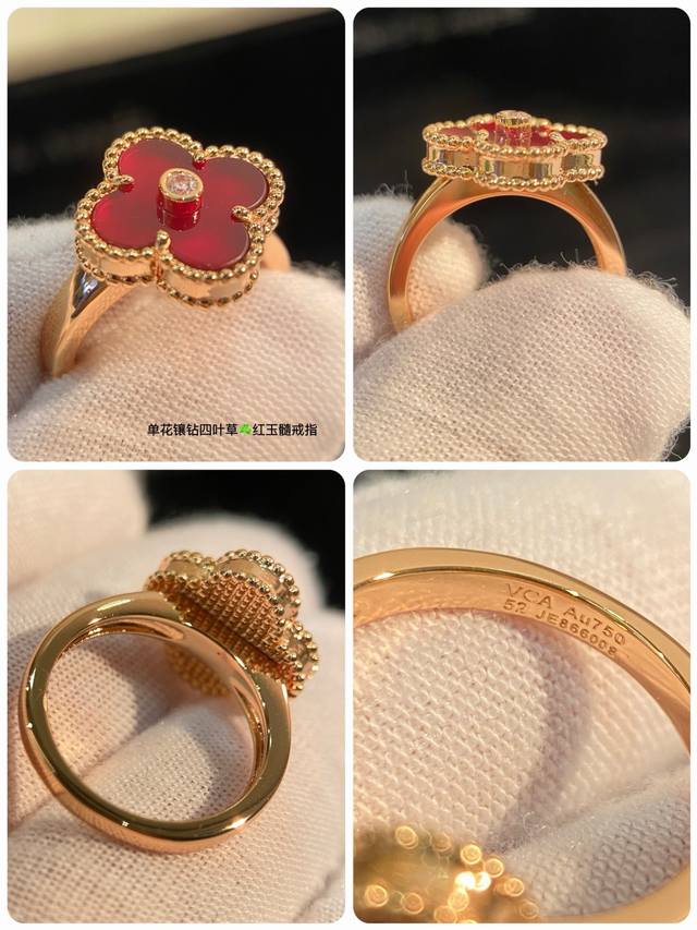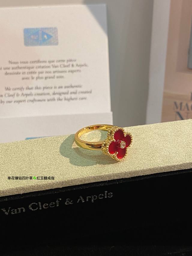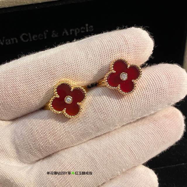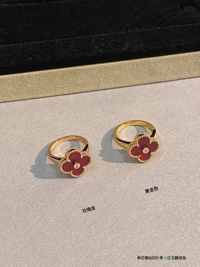 V Gold-plated Carnelian High Jewelry Vca Van Cleef & Arpels Custom Classic Four-Leaf Clover Ring Series This Year's Hottest Style, Perfect Flower Shape, Round and Full, High-End Batch Consistent. Delicate when worn alone, fashionable when stacked. Exquisite craftsmanship, long-lasting color retention, hypoallergenic, and non-fading. Sizes 6789 DDD