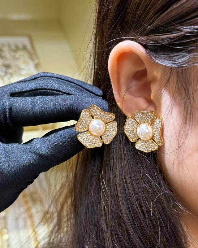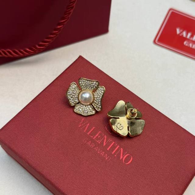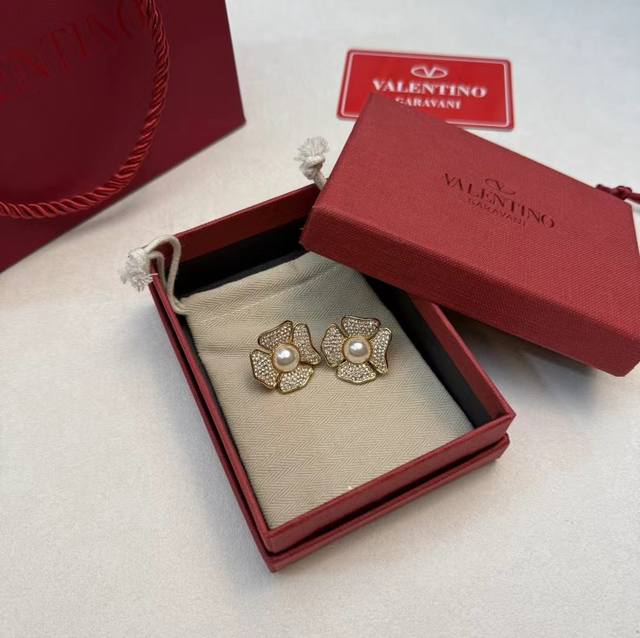 Valentino. Valentino counter new 2025 hot camellia diamond + pearl earrings simplify the complex, more exquisite and durable, romantic sentiment, aestheticism, sweet and refreshing new summer must-have items, selected authentic and consistent materials