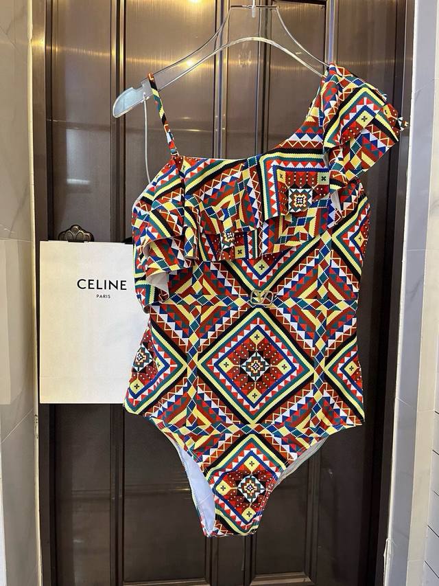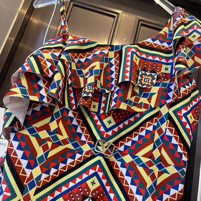 Valentino's new colorful bikini one-piece swimsuit, ruffled one-shoulder swimsuit, available at major counters, naturally presents a sense of fashion! Very age-reducing, with youthful vitality.