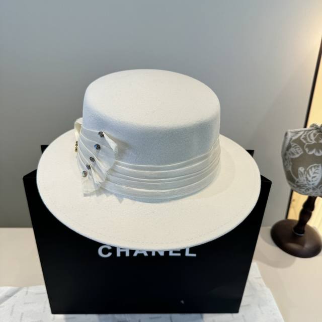 / White Valentino new classic lady style flat top hat, head circumference 57cm