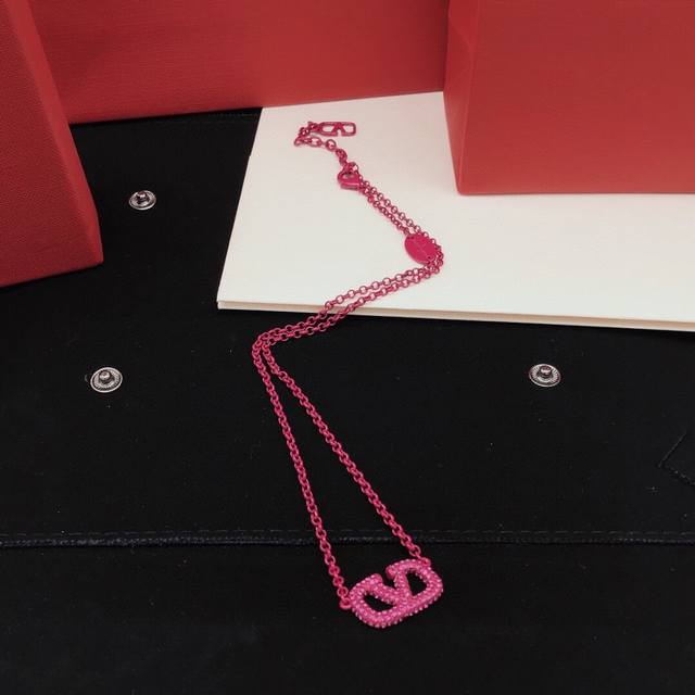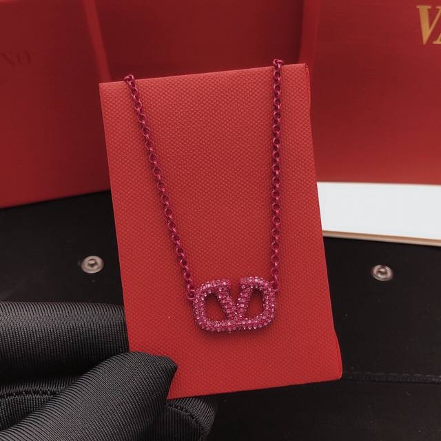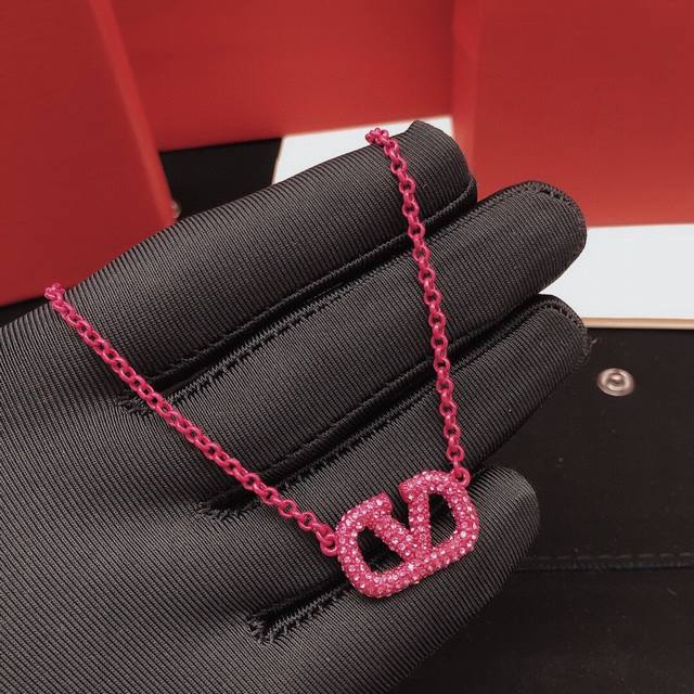 Valentino latest necklace, diamond-encrusted, purple, same style as the original, made of brass.