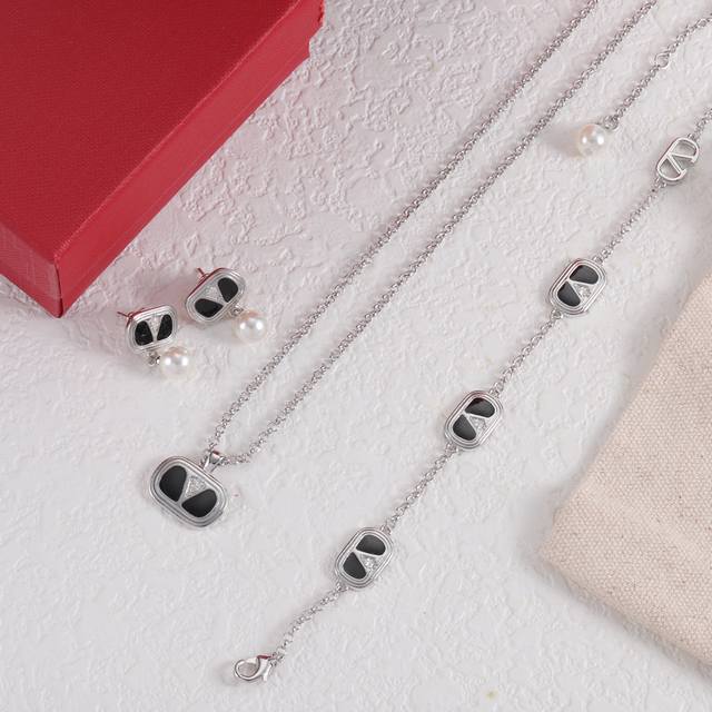 Valentino Heart-Shaped Full-Diamond Pearl Necklace With An Oval Vlogo Signature