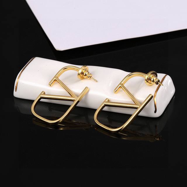 Valentino's iconic V-shaped stud earrings are a hot new arrival online! Simple, elegant, stylish, and versatile gold stud earrings, a best-seller in stores! Unique and avant-garde design, a must-have for every beauty!