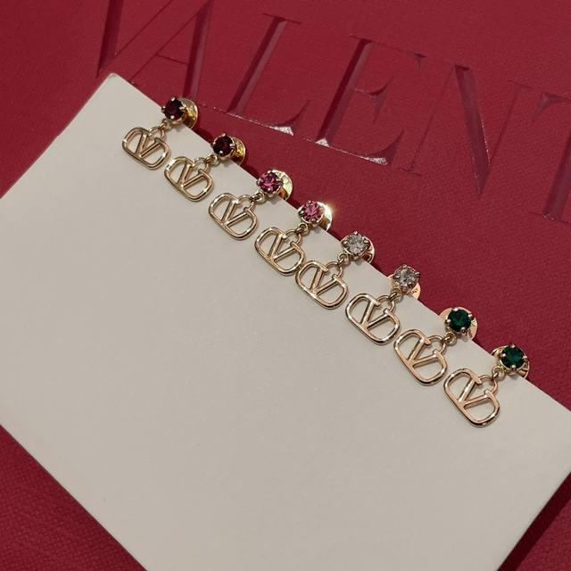 We present Valentino mini stud earrings Z 2100, the same style worn by Sun Li! These are incredibly lightweight and mini stud earrings! Exquisite and charming, available in four colors: red, green, pink, and white diamonds! A must-have for everyone! The classic small logo paired with the colored diamond design adds a subtle highlight to the otherwise simple design.