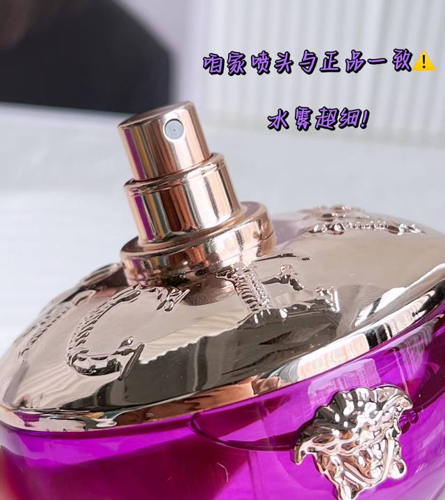Original Quality Versace Purple Eau de Parfum for Women (Ml) Top notes are fresh fruity, a blend of sweet pear and bitter orange, elegant with a touch of playfulness. The middle notes, with the arrival of freesia, are elegant, sophisticated, and very feminine. The base notes of cedarwood and musk further accentuate the elegant and charming aura.