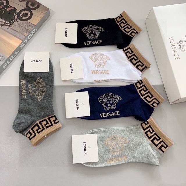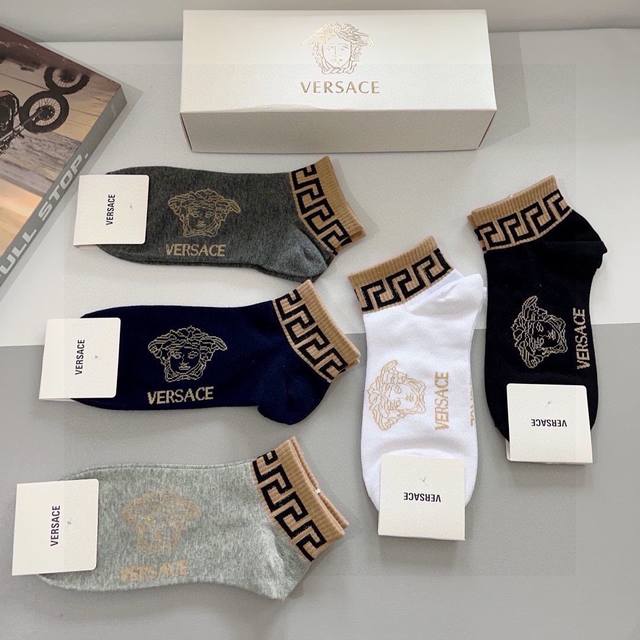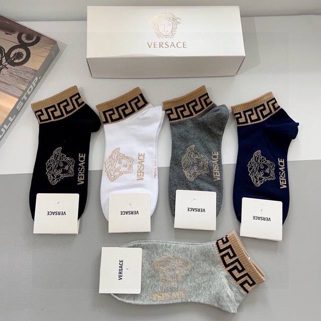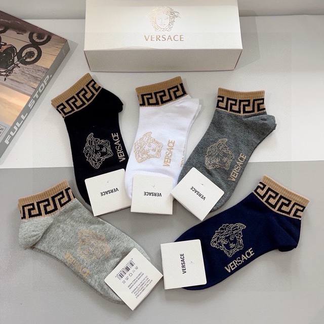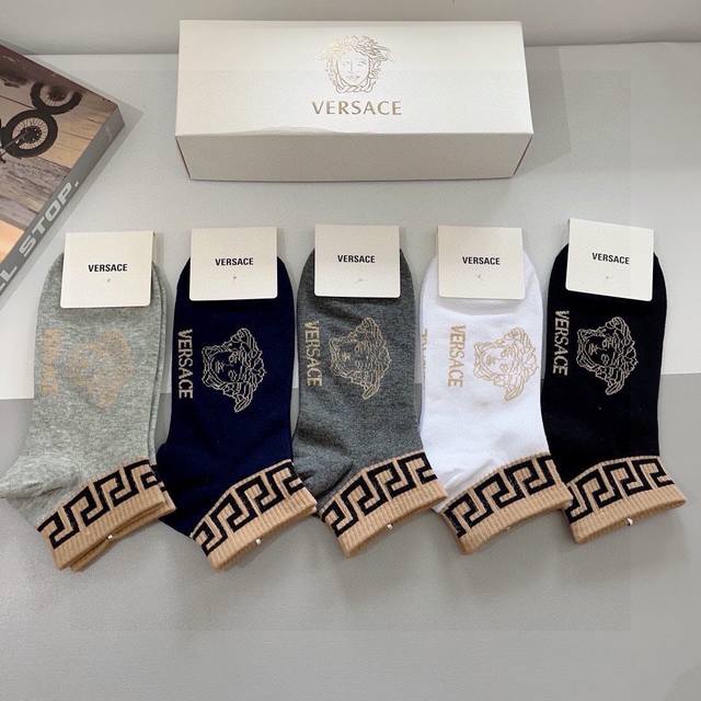 Five pairs per box with packaging. These Versace socks are incredibly stylish! A must-have for trendsetters, these high-end European and American brand boat socks are perfect for both men and women. Boutique quality, super high-class and incredibly fashionable! Highly recommended! A must-have fashion item!