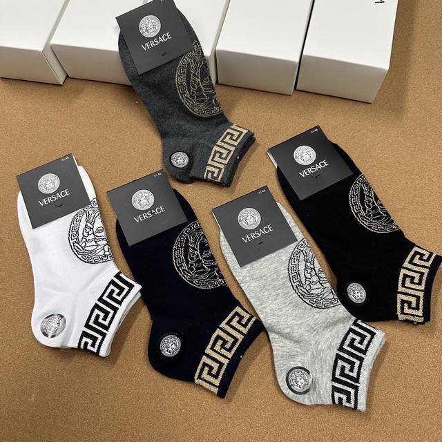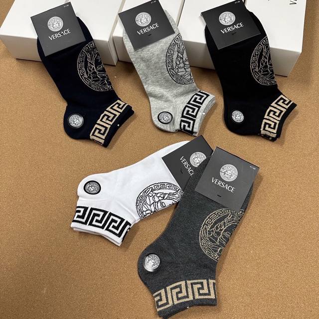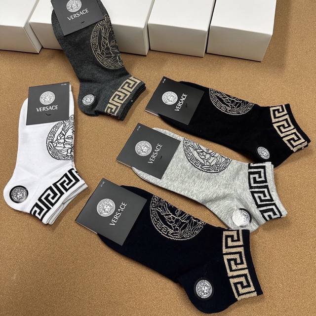 Special Versace new men's socks, one box of five pairs of pure cotton material, super soft and comfortable, jacquard classic logo, super hot Instagram small single product, big brand out, trendy must-have, super easy to match