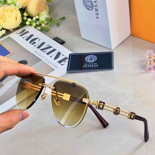 / Versac* metal frog mirror sunglasses travel sun visor sunglasses men and women a