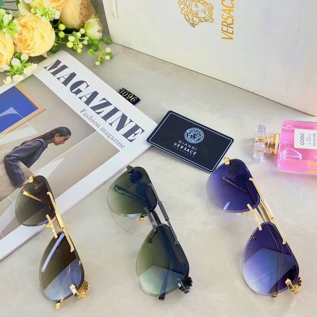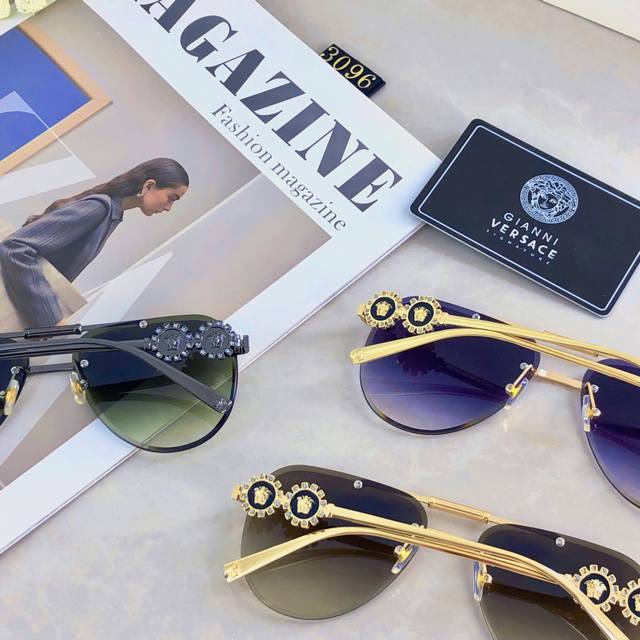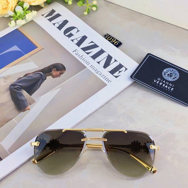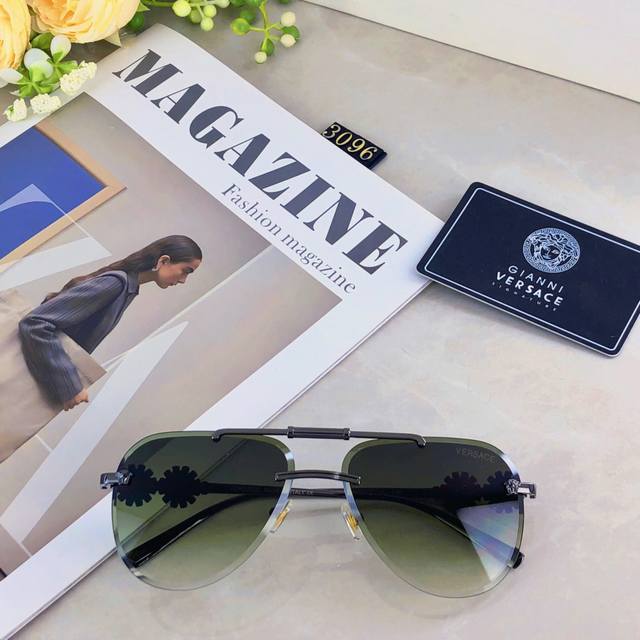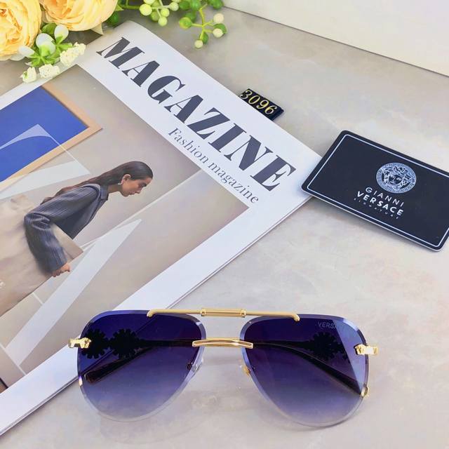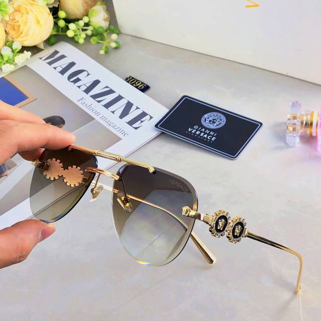 Versac* new metal sunglasses fashion trend men and women portrait sunglasses European and American business retro sun visor sunglasses