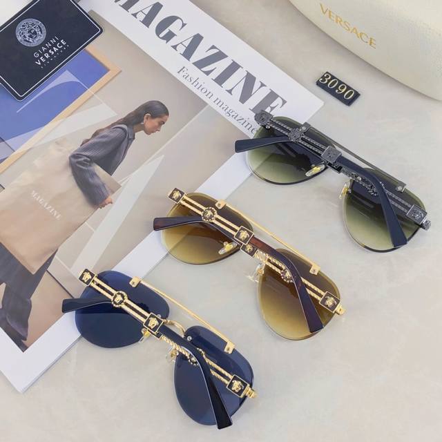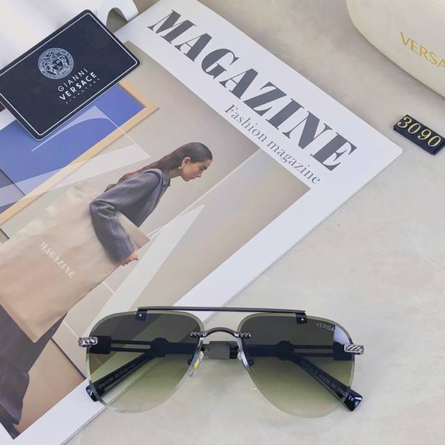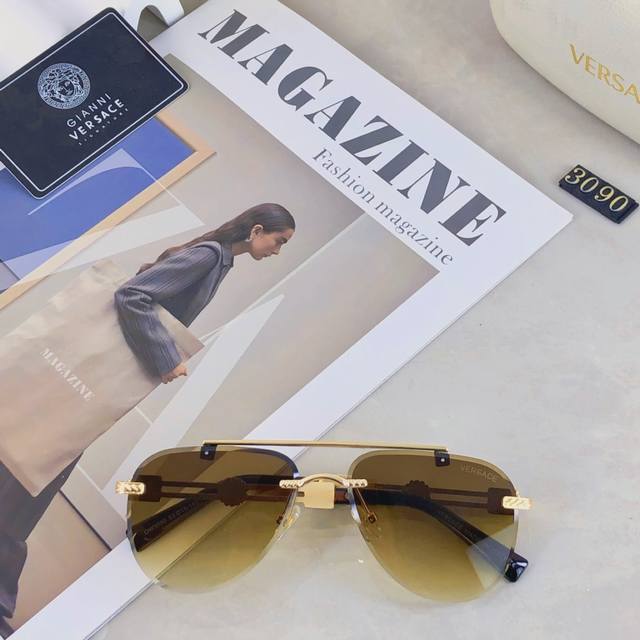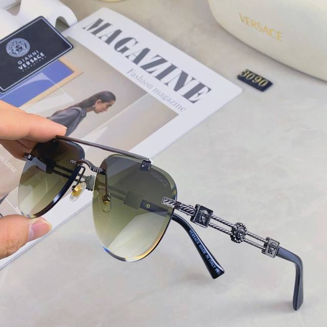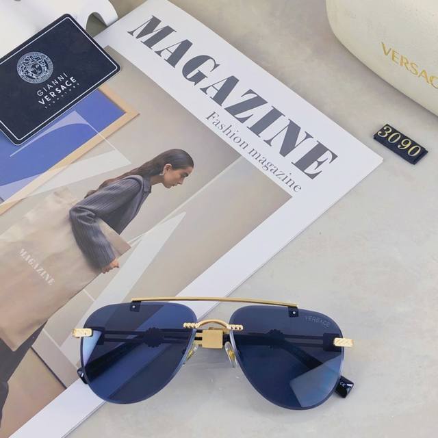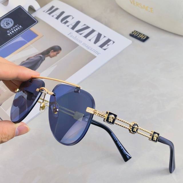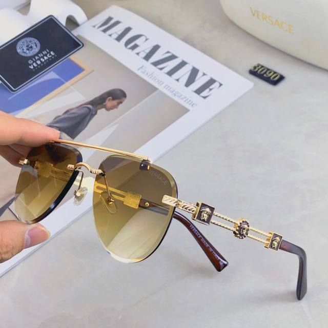 / Versace European and American style double beam frameless sunglasses Ins high-en