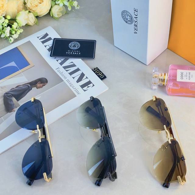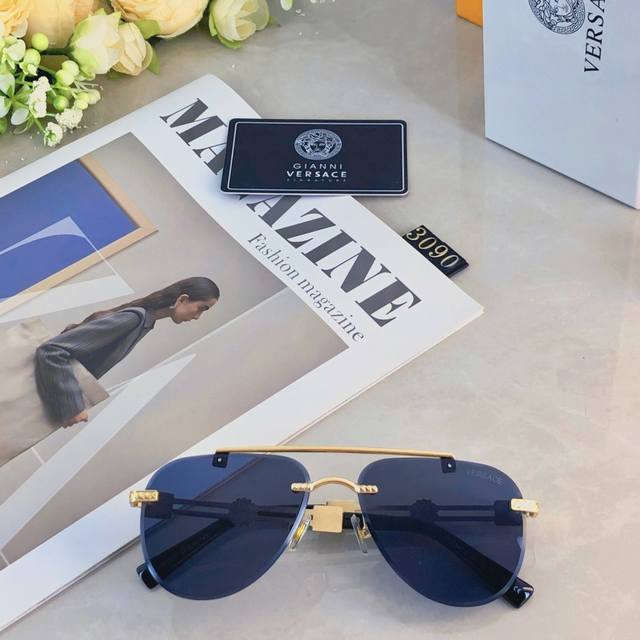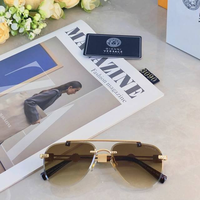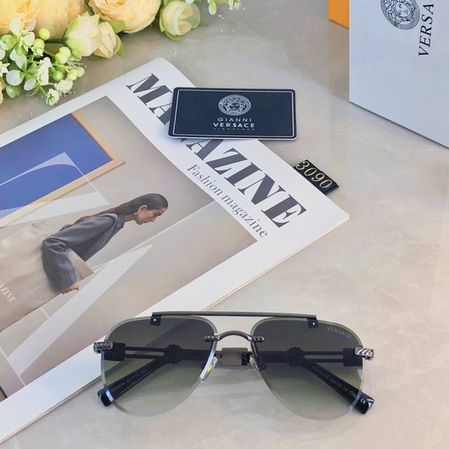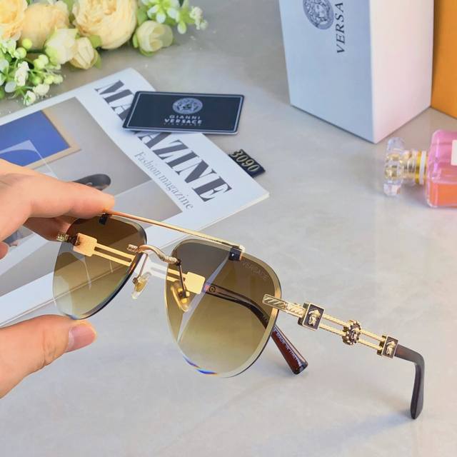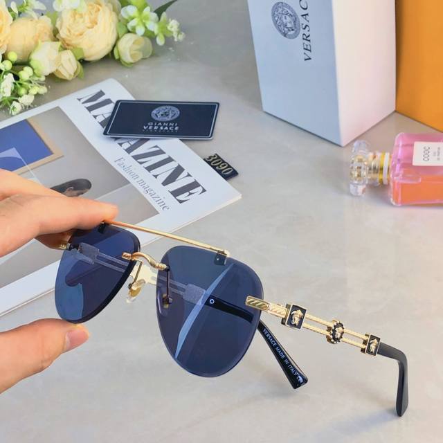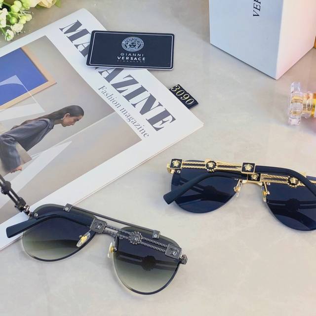 Versac*European and American retro men's punk style sunglasses metal double beam high-end business style sunglasses men's UV400 sun protection